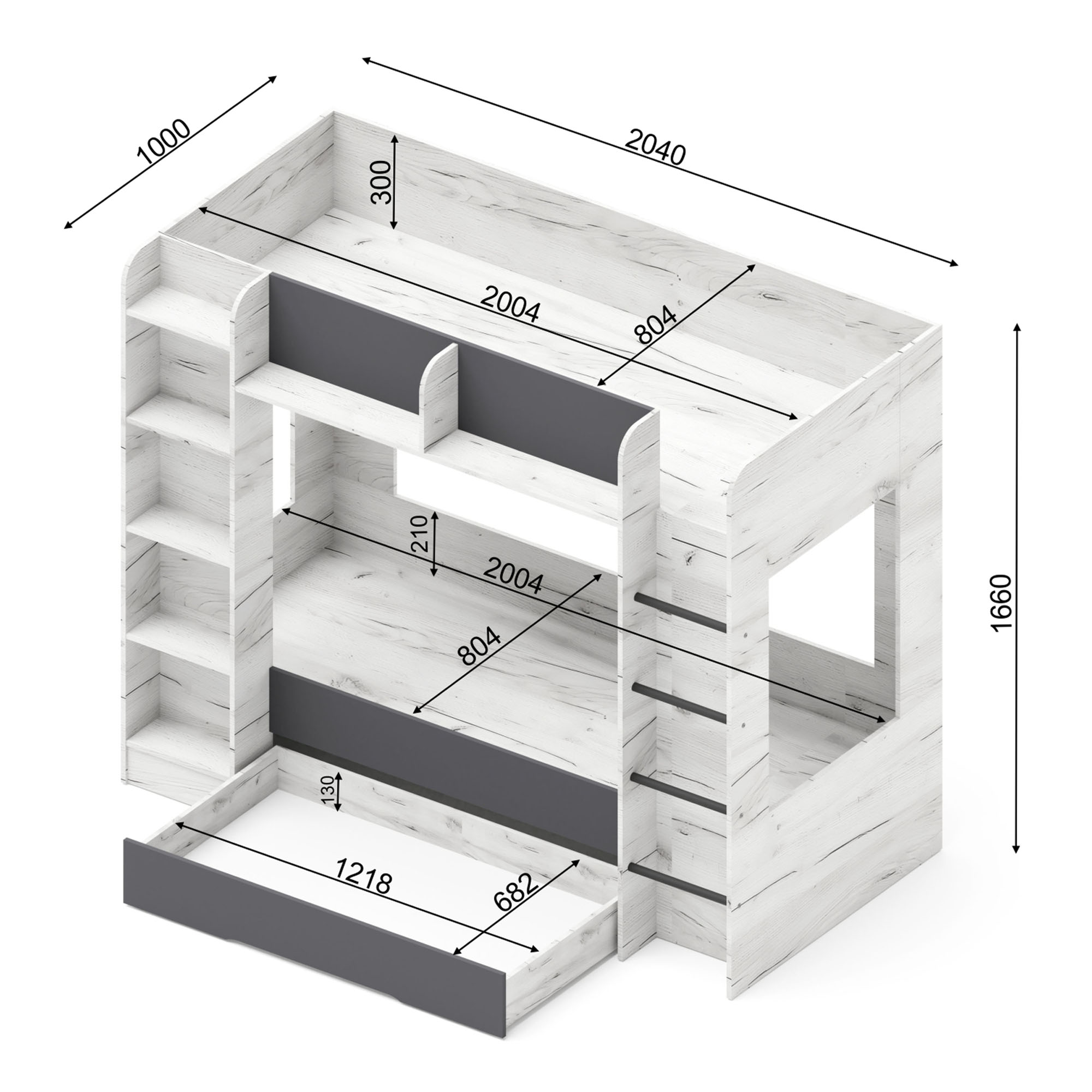 Antresola łóżko piętrowe FUJI craft biały / grafit