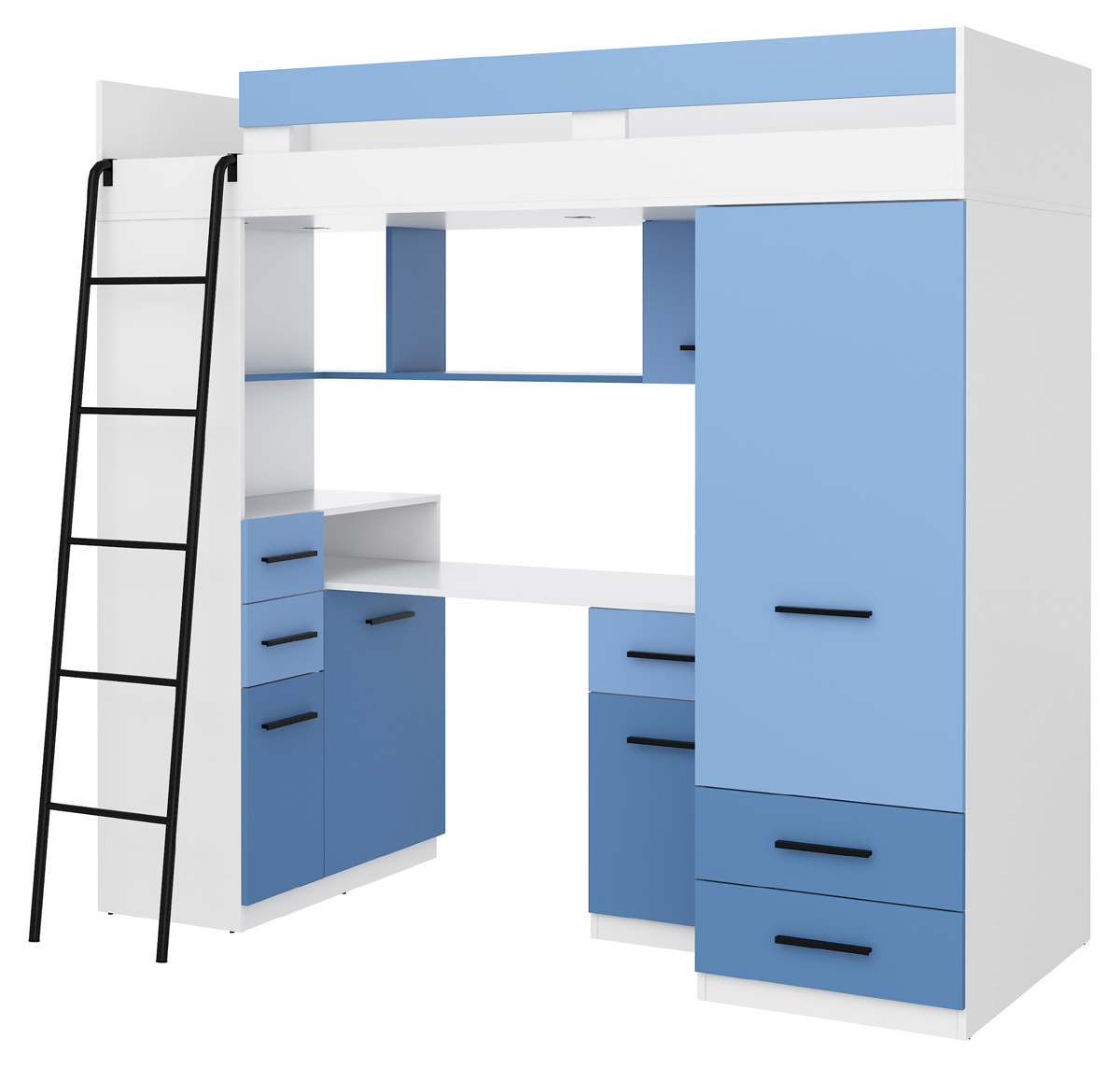 Antresola łóżko piętrowe SMYK lewe biały mat / błękit niebieski