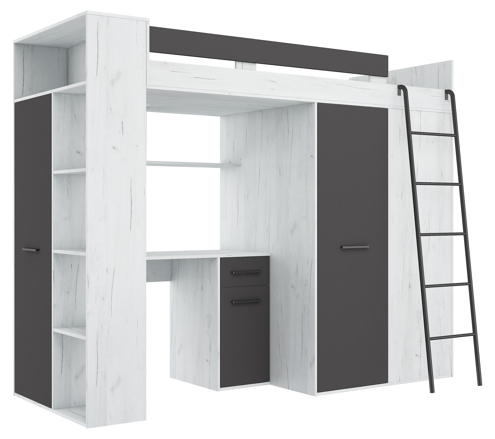 Antresola łóżko piętrowe VERANA prawa craft biały / grafit