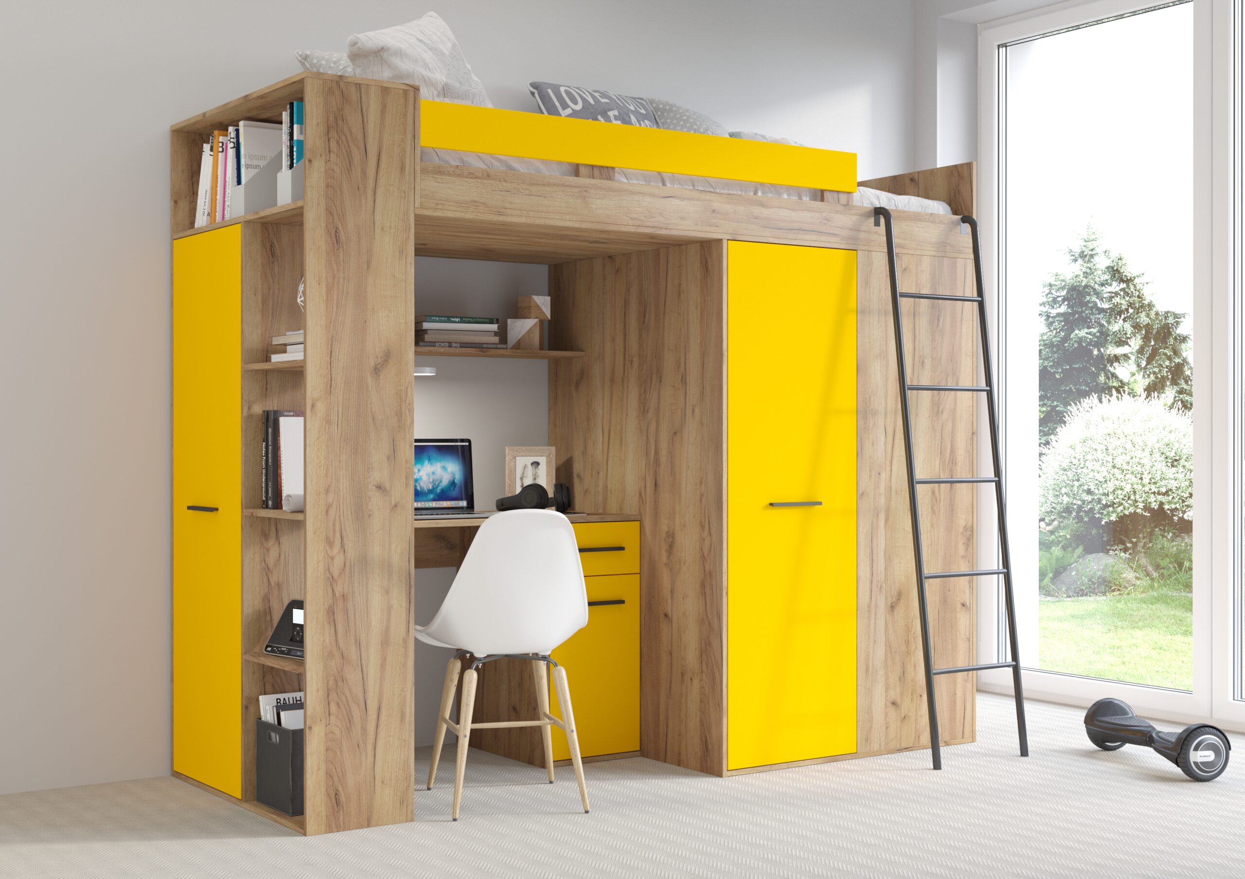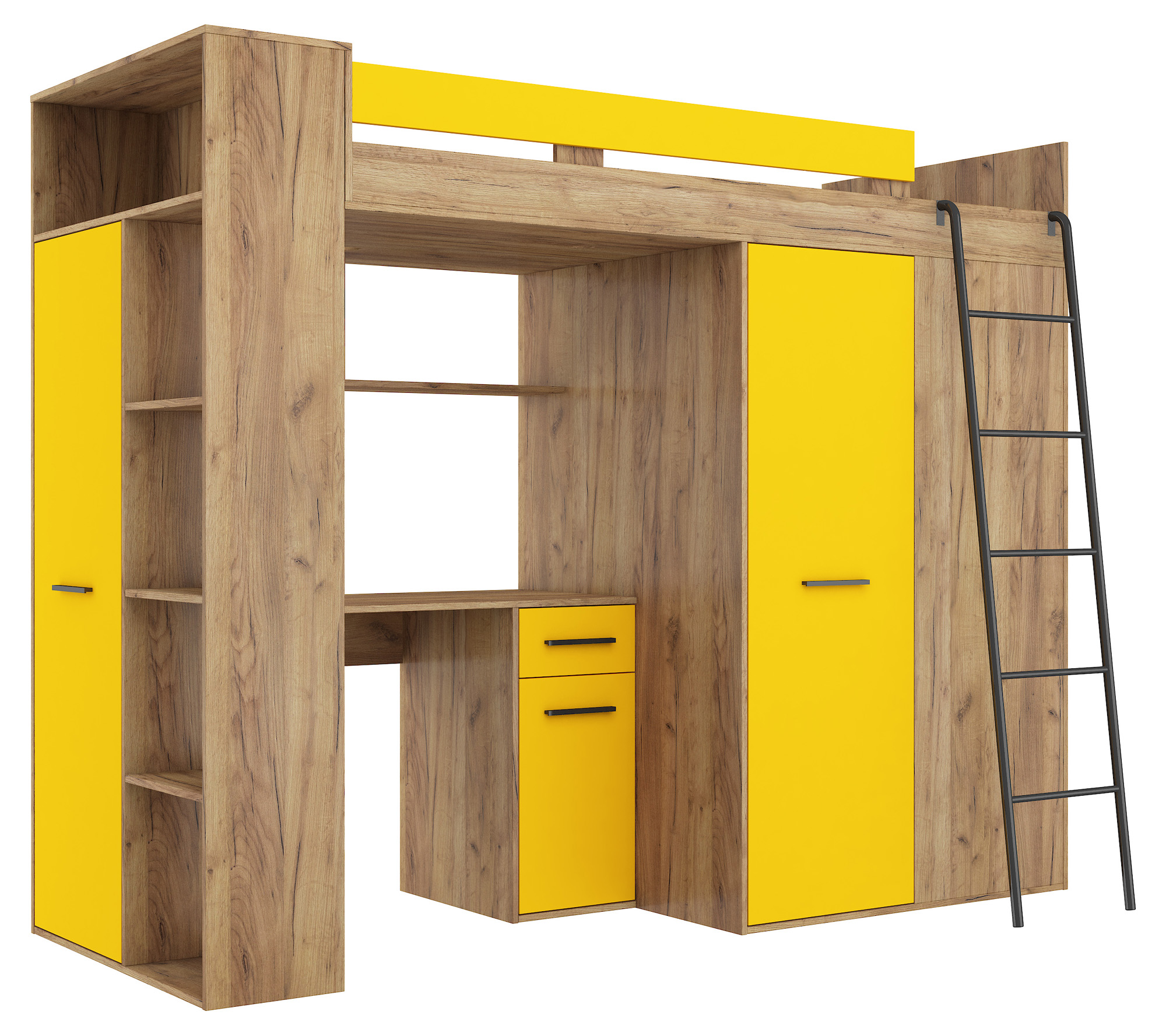 Antresola łóżko piętrowe VERANA prawa craft złoty / żółty