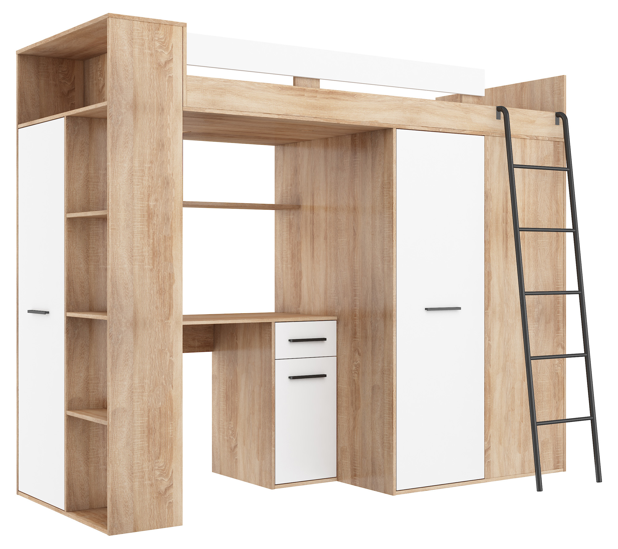 Antresola łóżko piętrowe VERANA prawa dąb sonoma / biały