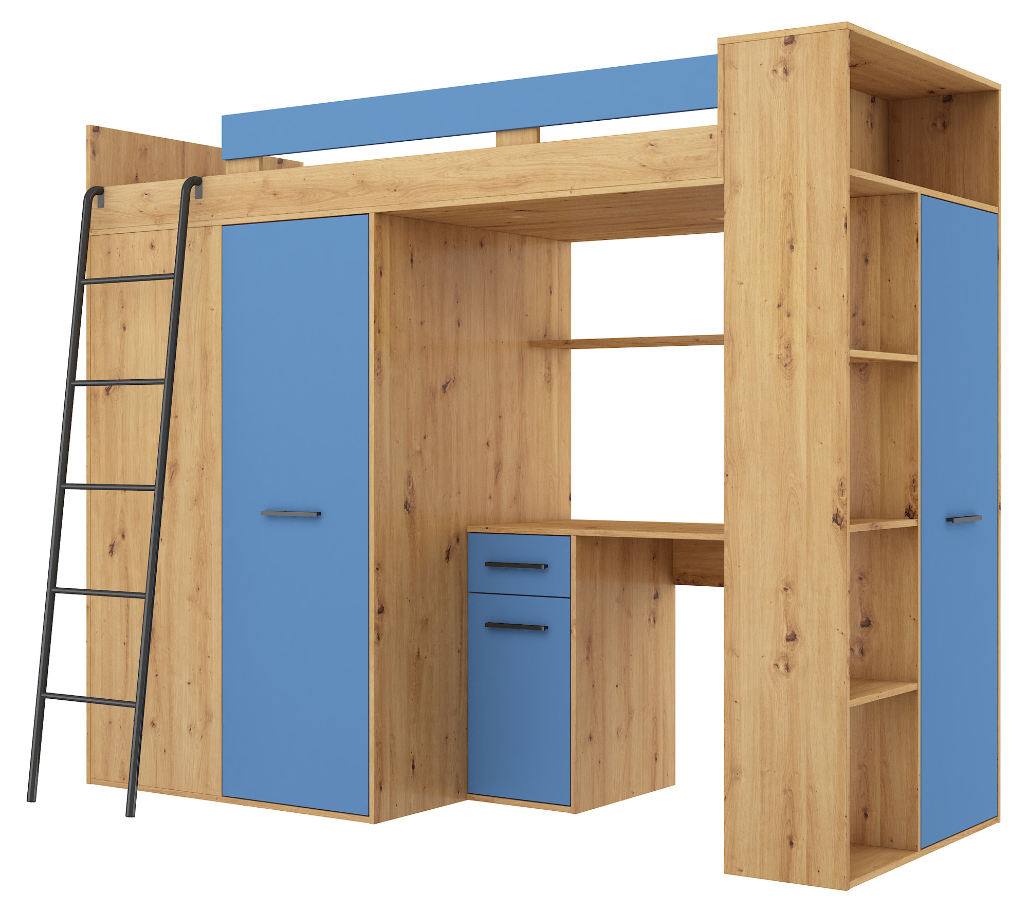 Antresola łóżko piętrowe VERANA strona LEWA dąb artisan / niebieski
