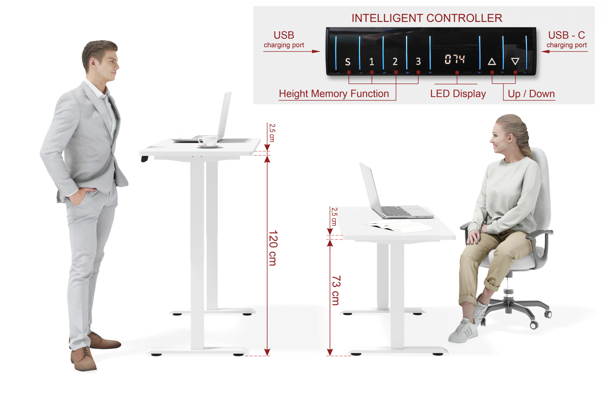 Biurko elektryczne BIMOTION to inteligentne centrum dowodzenia, które wprowadza dynamikę do Twojej pracy i nauki. Wyposażone w zaawansowany stelaż z regulacją wysokości w zakresie 73–120 cm, pozwala na błyskawiczną zmianę pozycji z siedzącej na stojącą, dbając o Twoje zdrowie i efektywność. Sterownik LED z funkcją pamięci ustawień oraz portami USB/USB-C zapewnia pełną kontrolę nad przestrzenią, a system antykolizyjny gwarantuje bezpieczeństwo mechanizmu. Solidny, biały blat o grubości 25 mm osadzony na stabilnej, metalowej ramie to gwarancja trwałości, która sprosta wymaganiom zarówno profesjonalnego biura, jak i domowego kącika gamera.