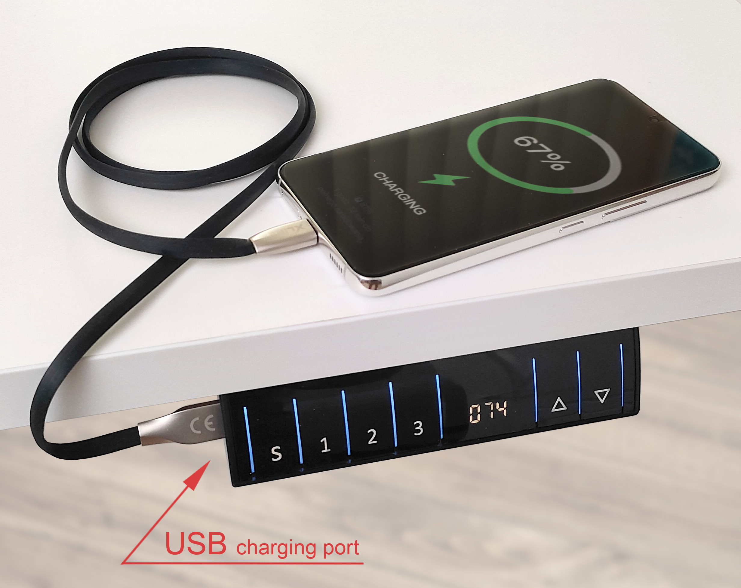 Sercem biurka jest precyzyjny, jednosilnikowy mechanizm o prędkości 28 mm/s, który pracuje niezwykle cicho (poniżej 50 dB), nie zakłócając spokoju w biurze czy domu. Inteligentny sterownik LED to coś więcej niż tylko przyciski góra/dół – to Twój asystent personalizacji. Pozwala on zapisać trzy ulubione wysokości, dzięki czemu idealne dopasowanie blatu zajmuje ułamek sekundy. Dodatkowym atutem są wbudowane porty USB oraz USB-C, które eliminują problem plątaniny kabli na blacie, umożliwiając bezpośrednie ładowanie smartfona czy tabletu.
