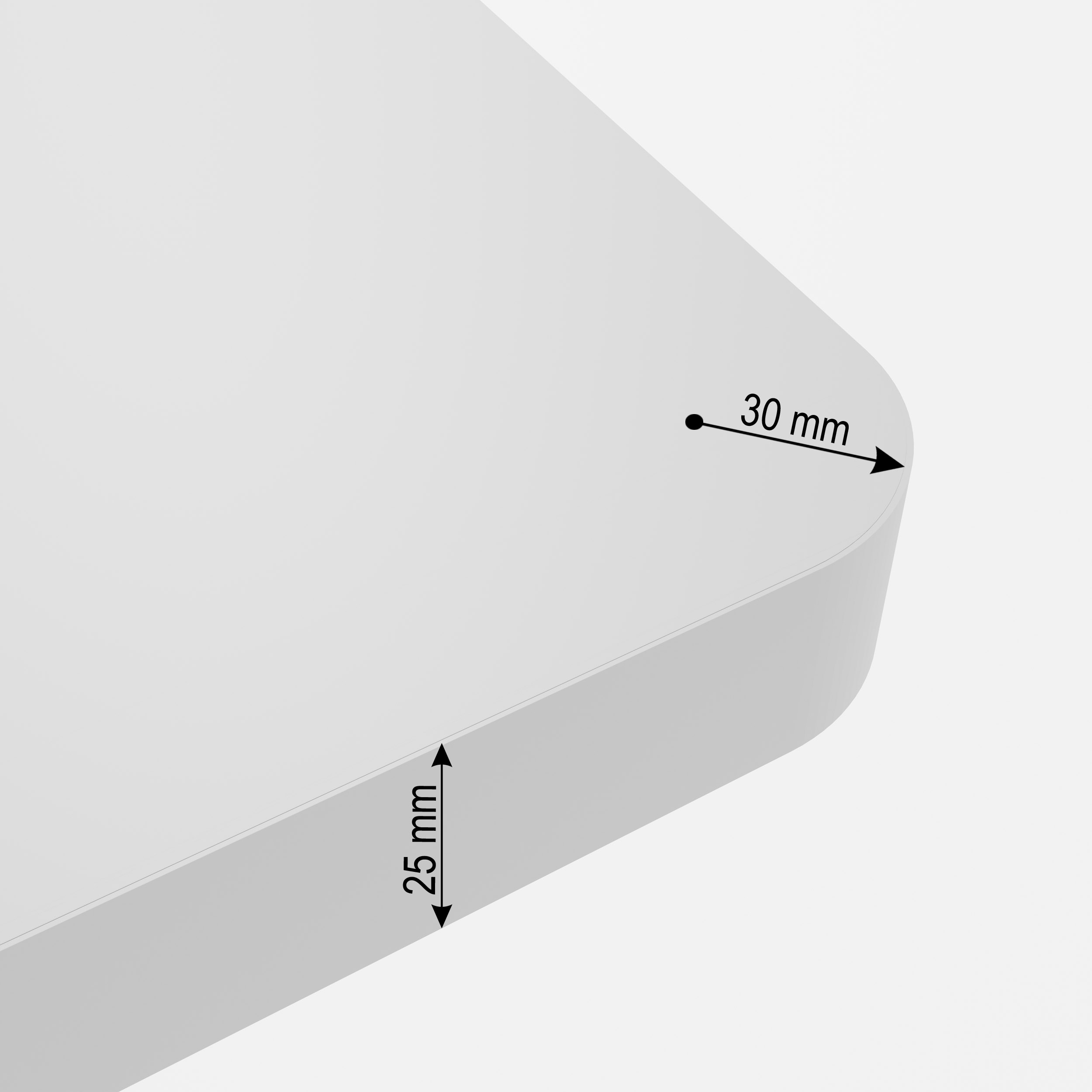 Blat: płyta laminowana 25 mm, obrzeża ABS 0,8 mmWymiary