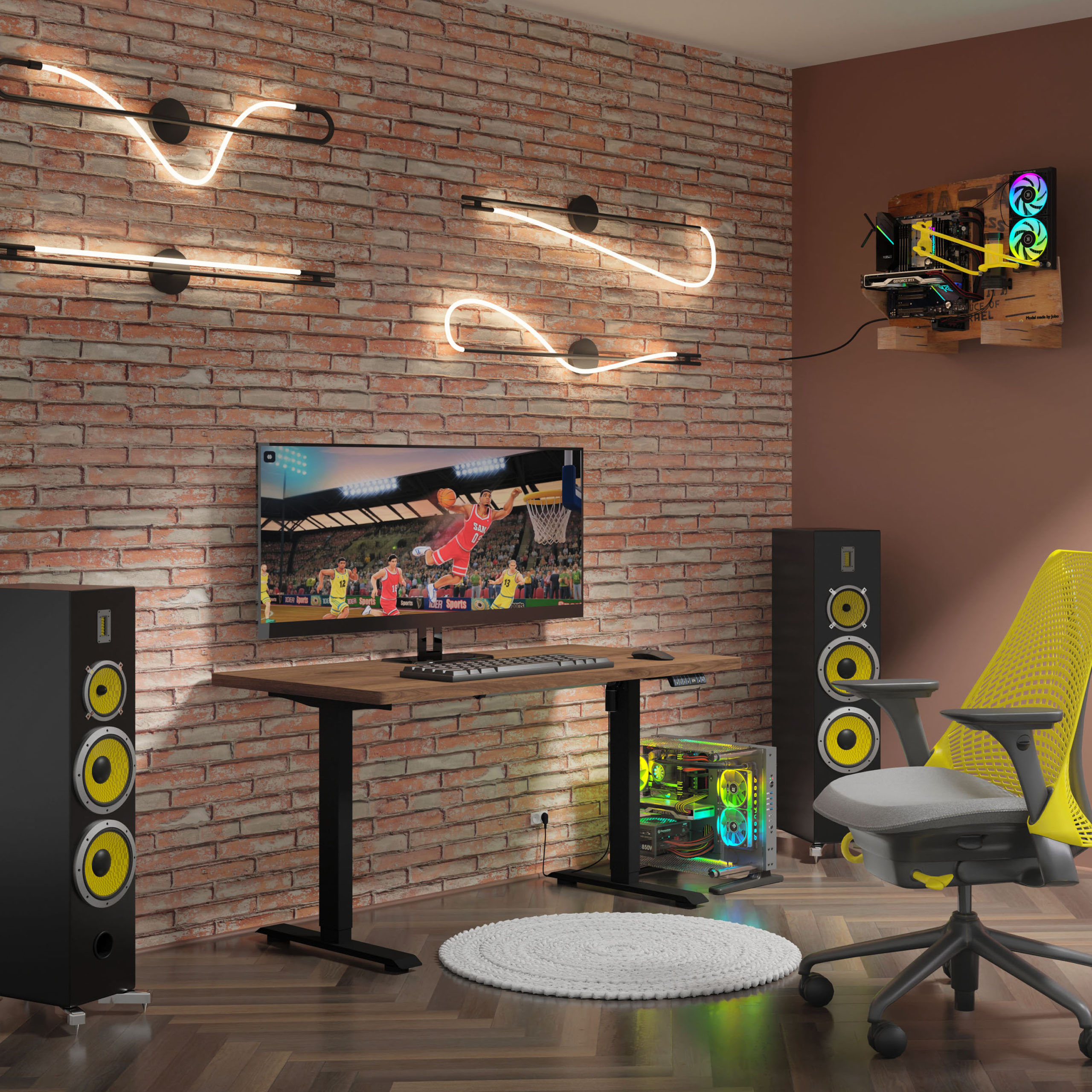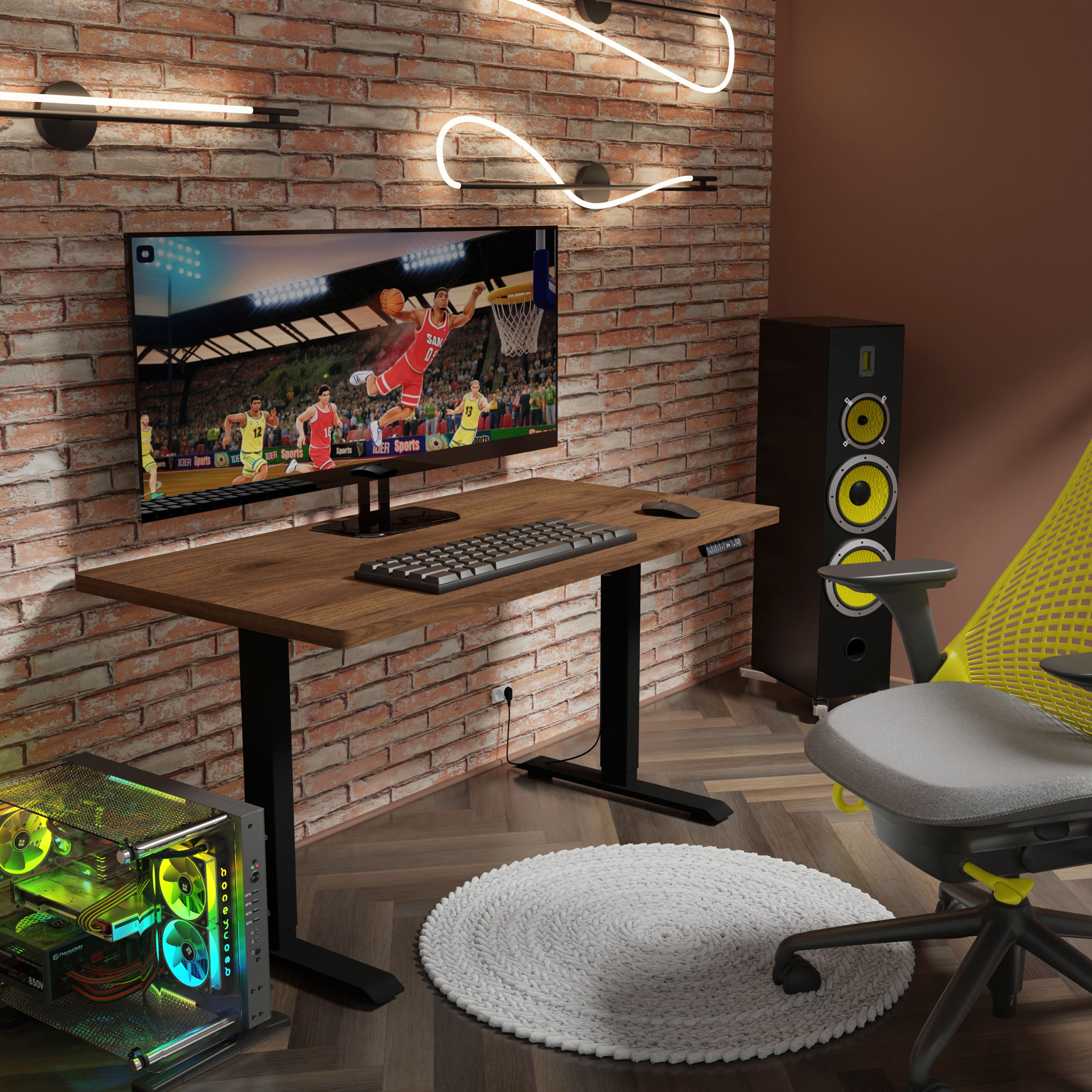 Biurko elektryczne BIMOTION w wykończeniu orzechowym z czarnym stelażem to kwintesencja stylu i profesjonalizmu. Pogrubiony do 3,2 cm blat o szerokości 140 cm zapewnia nie tylko prestiżowy wygląd, ale i bezkompromisową stabilność podczas pracy. Dzięki precyzyjnej, elektrycznej regulacji wysokości możesz błyskawicznie zmienić pozycję na stojącą, dbając o zdrowie kręgosłupa i wyższą koncentrację. To inteligentne rozwiązanie dla tych, którzy cenią szlachetną estetykę i najwyższą ergonomię. Odkryj przestrzeń, która dopasowuje się do Twojego rytmu dnia.