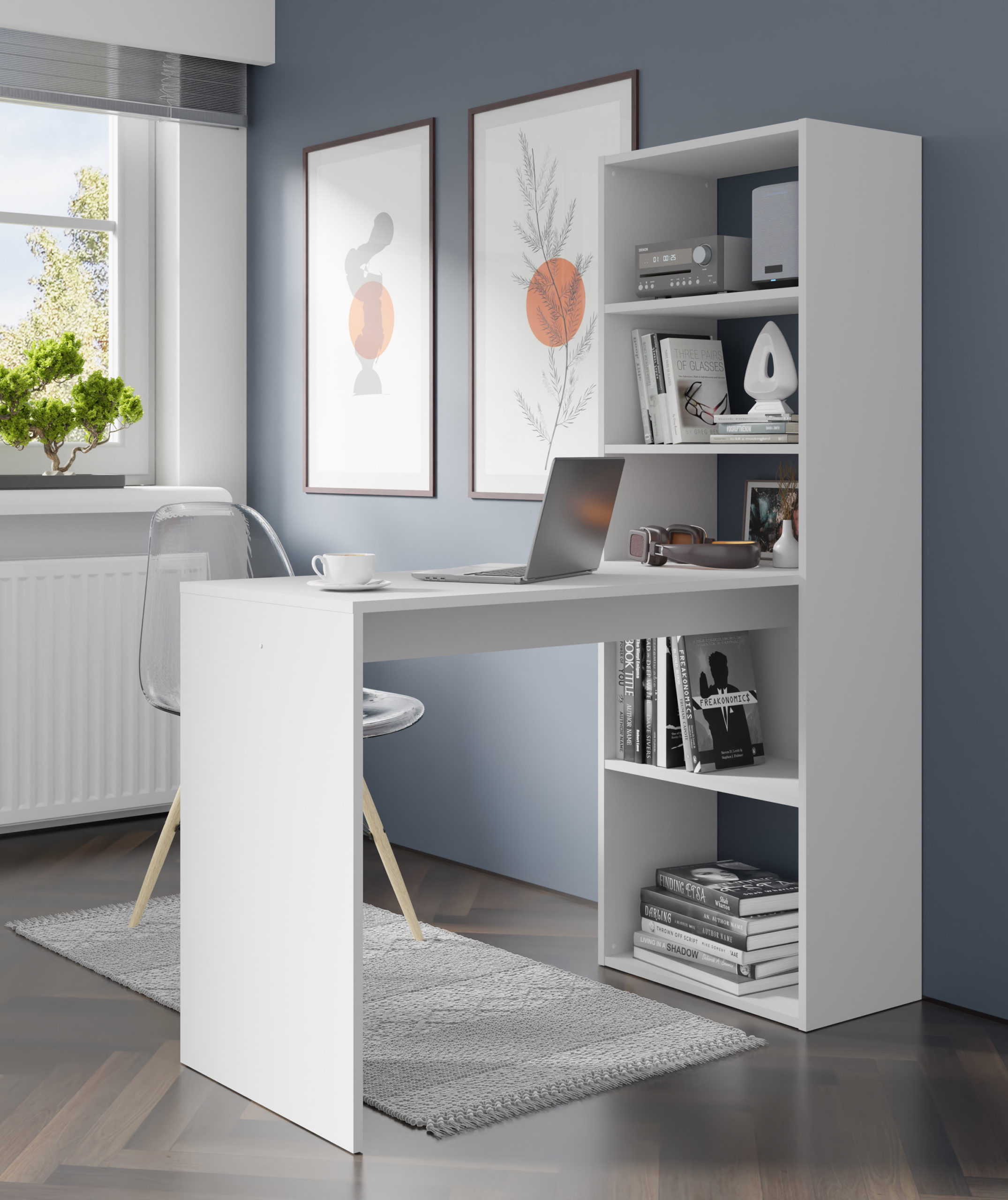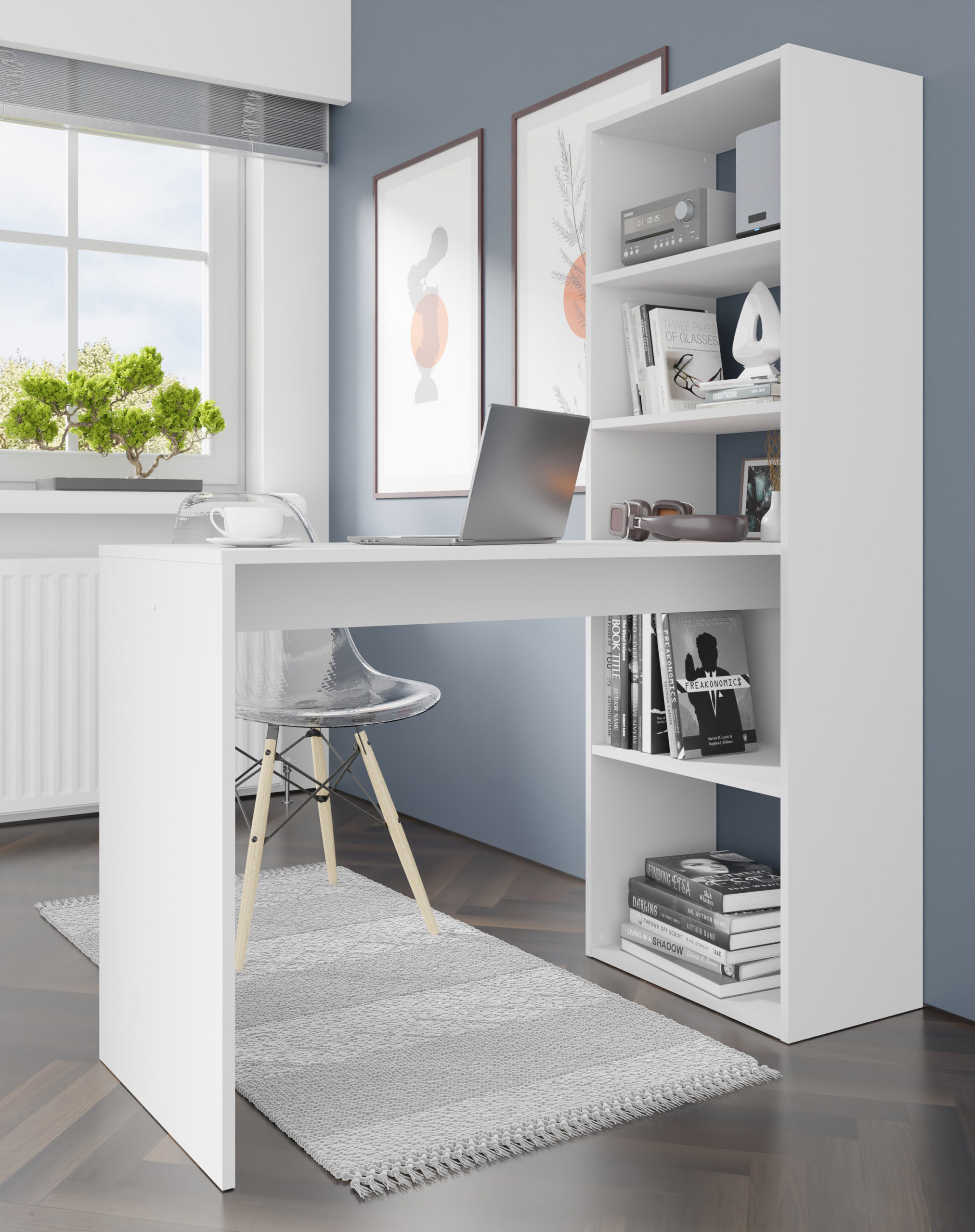 Biurko HARMONY komputerowe z regałem półkami biały mat