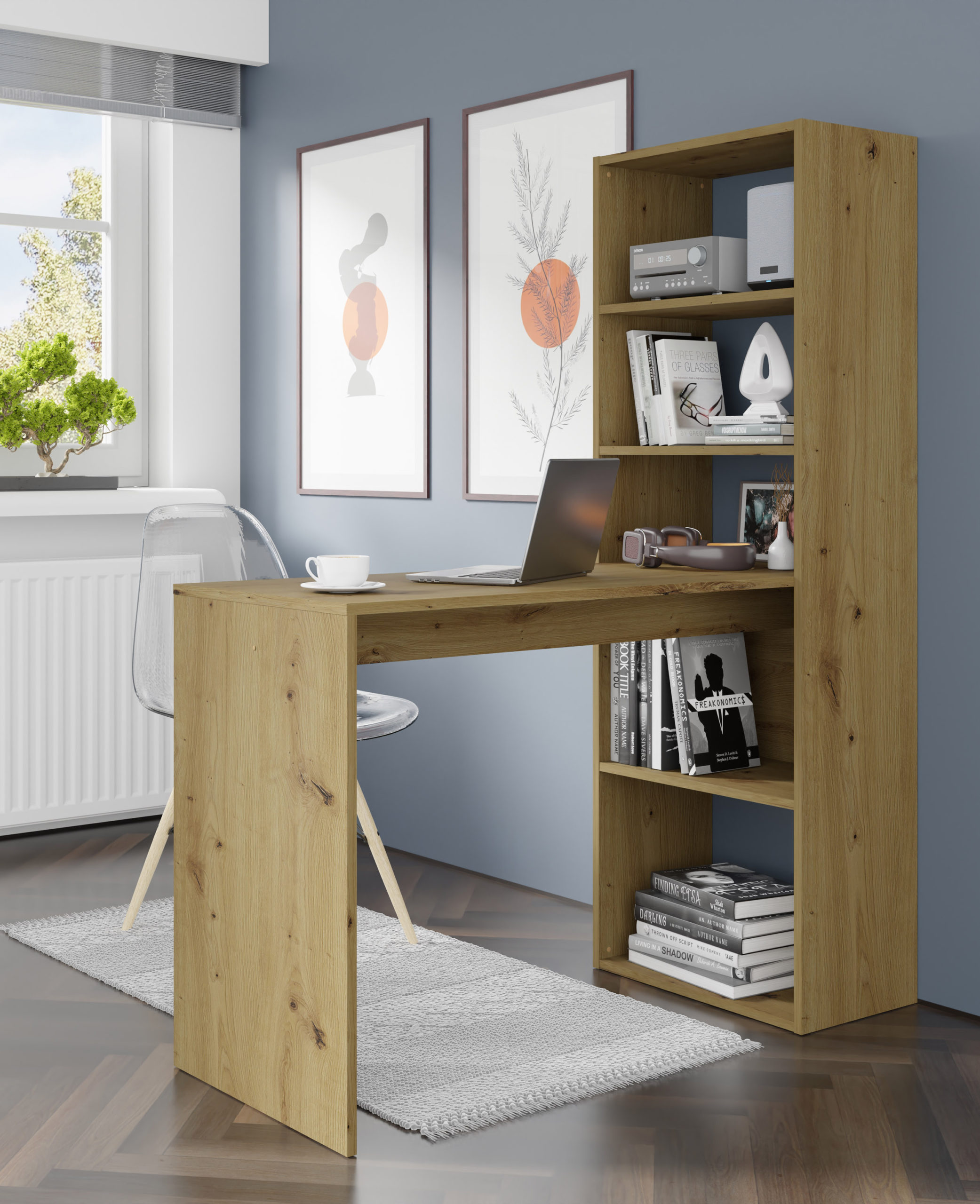 Biurko HARMONY w kolorze dębu artisan to mebel, który wprowadza do domowego biura lub pokoju młodzieżowego kojący, naturalny klimat. Wyrazista struktura drewna z charakterystycznymi sękami sprawia, że przestrzeń robocza staje się przytulna, co bezpośrednio przekłada się na lepsze samopoczucie podczas wielogodzinnej nauki czy pracy. Jeśli szukasz rozwiązania, które nie tylko ułatwi Ci organizację zadań, ale także stanie się ozdobą wnętrza, ten model jest strzałem w dziesiątkę. To kompaktowa stacja robocza, która dzięki swojej pionowej konstrukcji pozwala zyskać mnóstwo miejsca do przechowywania, bez konieczności dokupowania osobnych regałów.