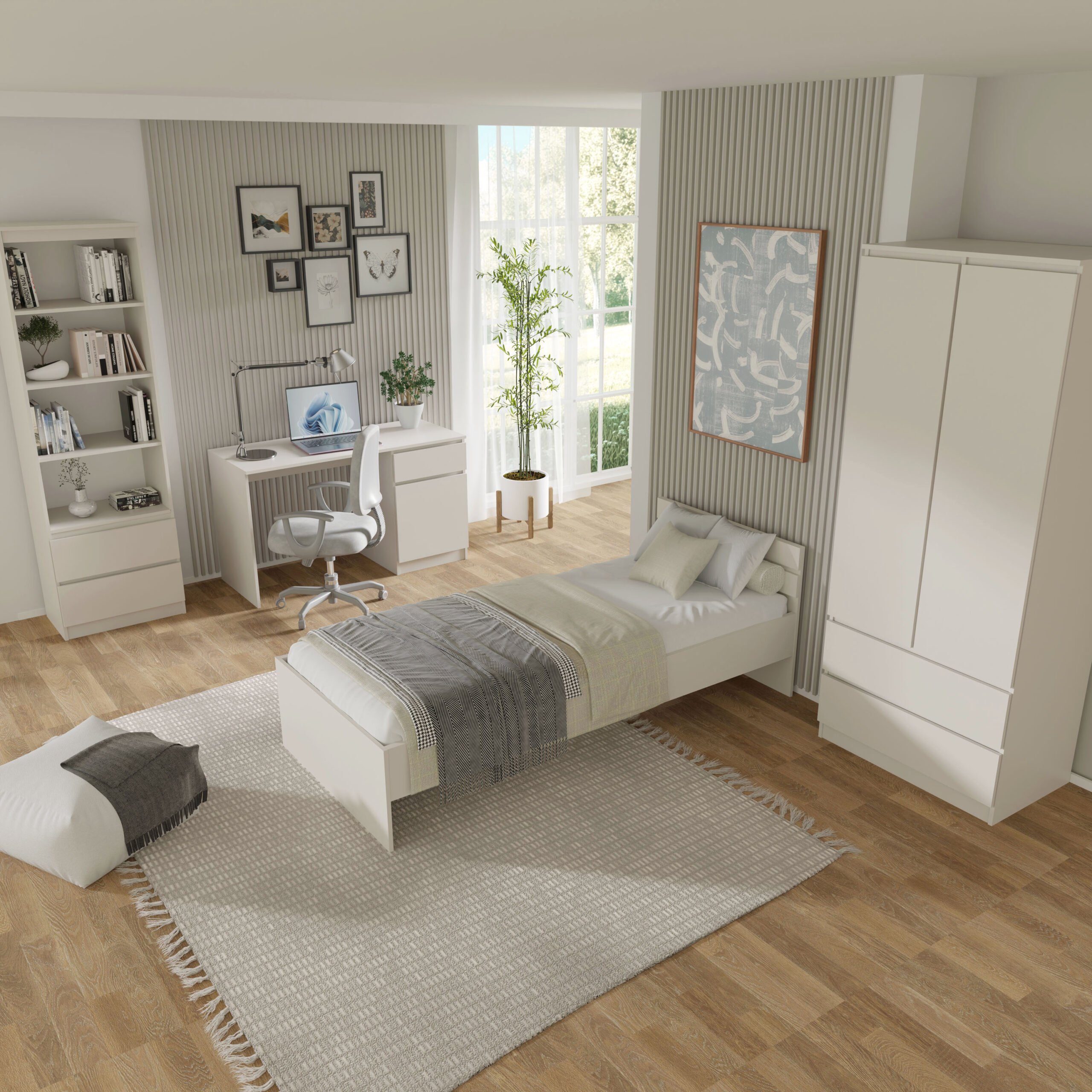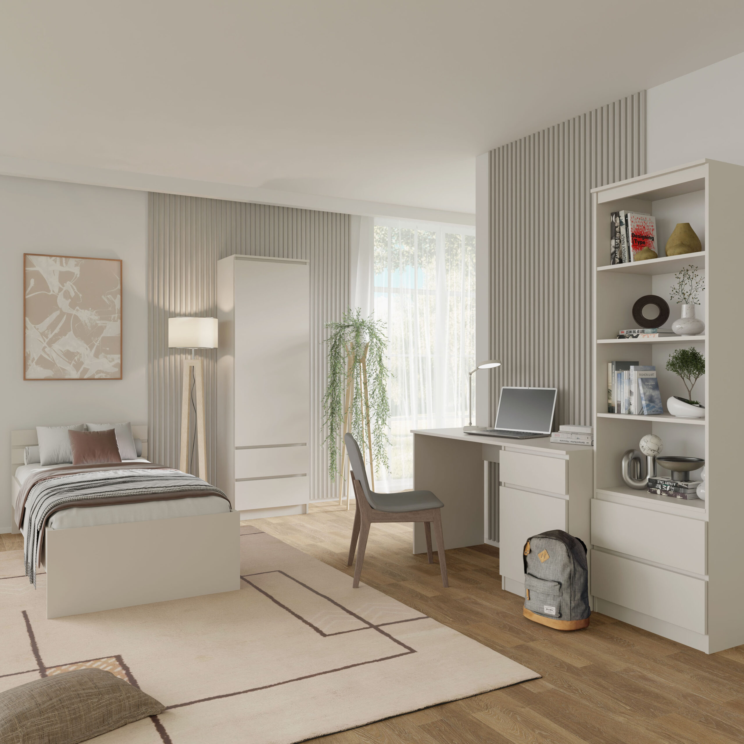 Twoja codzienna wydajność zależy od komfortu, dlatego biurko MAJA oferuje szeroki na 130 cm blat, będący synonimem swobody. Bez względu na to, czy pracujesz na dwóch monitorach, projektujesz, czy uczysz się z grubych podręczników – ta przestrzeń nigdy Cię nie zawiedzie. Zintegrowana szafka i płynnie wysuwana szuflada działają jak osobisty asystent porządku, pozwalając na natychmiastowe uprzątnięcie dokumentów i akcesoriów. Dzięki systemowi bezuchwytowemu bryła mebla pozostaje lekka wizualnie, co optycznie powiększa wnętrze i nadaje mu nowoczesnego sznytu.