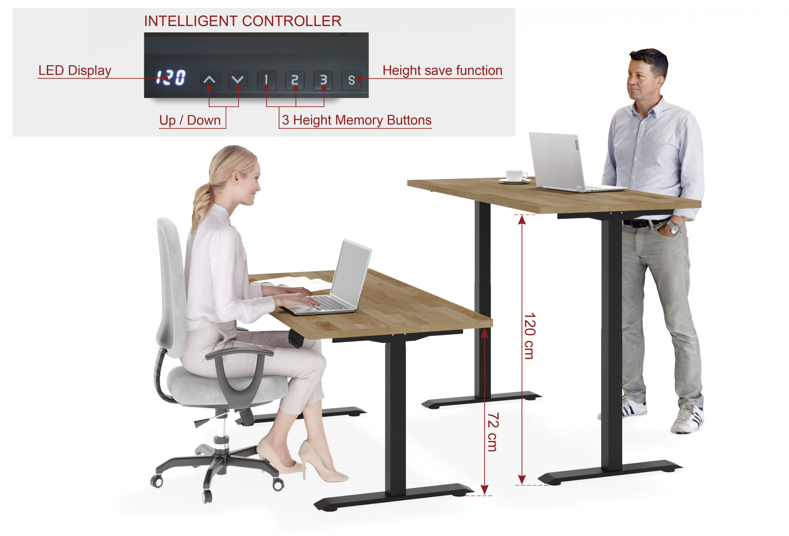 Biurko regulowane BIM Natural Desk fornir dębowy 160x80x3 dąb/czarny