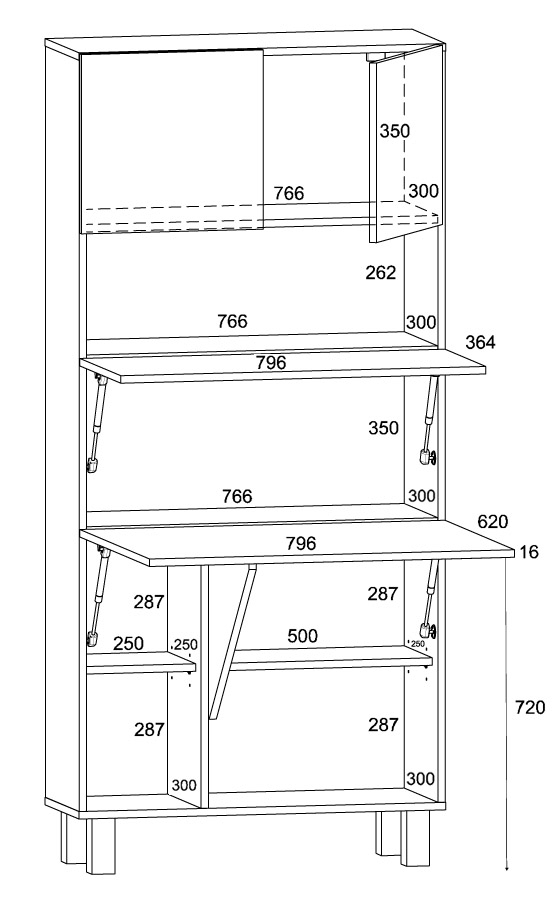 Przechowywanie jeszcze nigdy nie było tak proste i stylowe. Wewnątrz HOMI znajdziesz aż sześć zamykanych półek, które pomieszczą wszystkie Twoje segregatory, dokumenty oraz sprzęt elektroniczny, chroniąc je przed kurzem i spojrzeniami gości. Jedna otwarta wnęka to z kolei idealny punkt na ulubione dekoracje lub przedmioty, po które sięgasz najczęściej. Po zakończeniu pracy wystarczy złożyć blat, aby biurowe akcesoria zniknęły za gładkimi, błyszczącymi frontami, pozwalając Ci w pełni cieszyć się domowym relaksem w uporządkowanym otoczeniu.