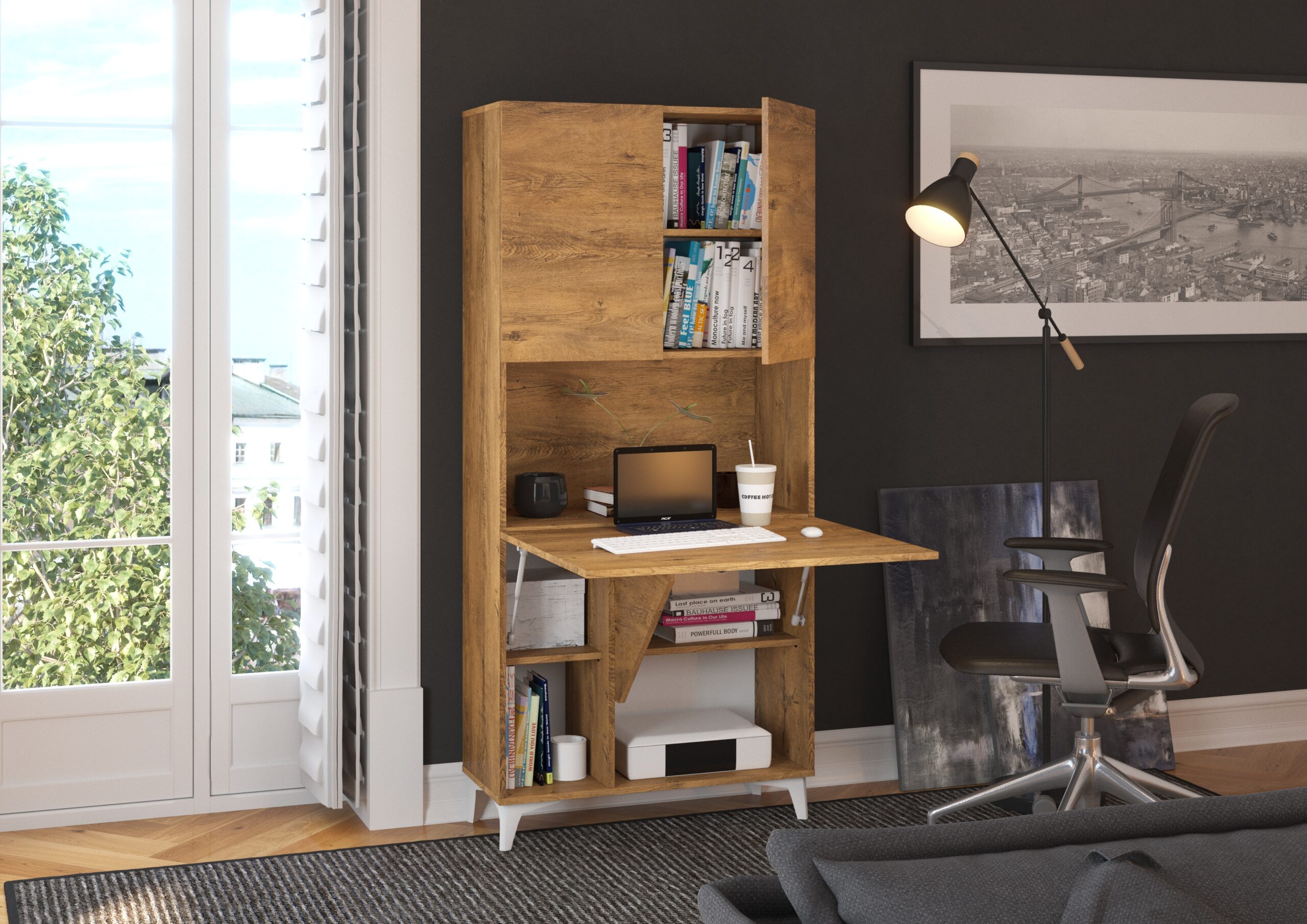 Biurko rozkładane regał MEGAN 1 dąb burgundzki