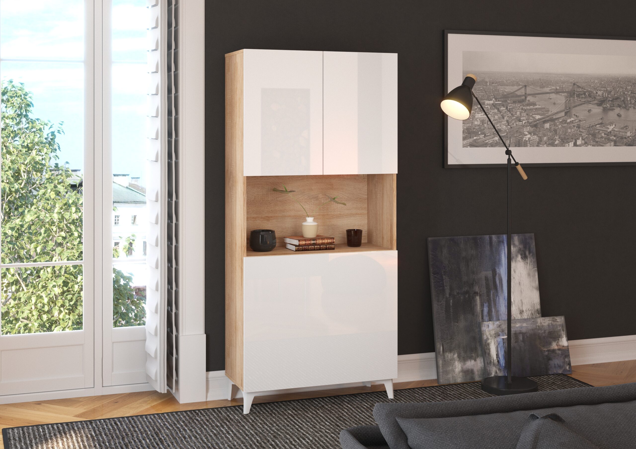 Odkryj mebel, który jest mistrzem metamorfozy – biurko rozkładane MEGAN w inspirującym połączeniu Dębu Sonoma i białego połysku. To inteligentne rozwiązanie typu „space-saver” pozwala przekształcić dowolny kąt w domu w profesjonalne stanowisko pracy, nie rezygnując przy tym z nowoczesnej estetyki. Ciepły odcień dębowego korpusu w zestawieniu z lśniącymi, białymi frontami nadaje wnętrzu lekkości i elegancji. Dzięki systemowi cichego domyku, pojemnemu regałowi i rozkładanemu blatowi, MEGAN to idealny wybór dla osób szukających ergonomicznego biurka, które po skończonej pracy staje się stylową, kompaktową szafką.