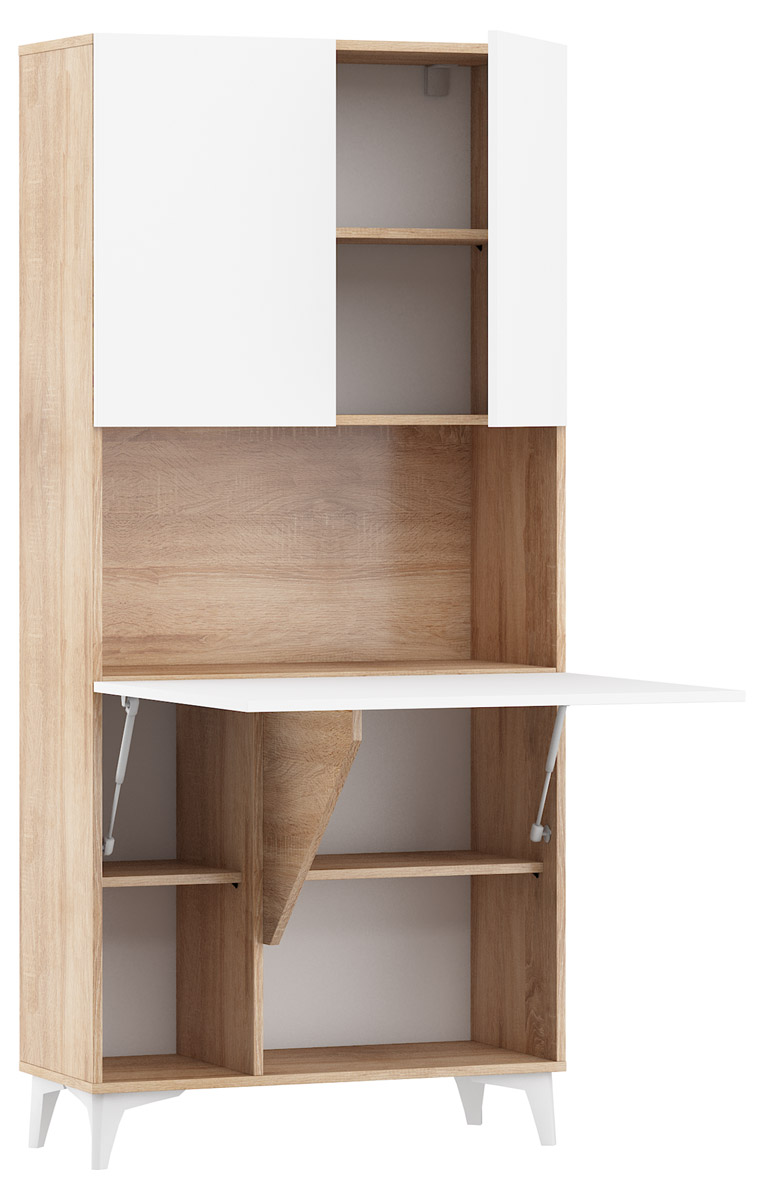 Biurko rozkładane regał MEGAN 1 dąb sonoma / biały połysk