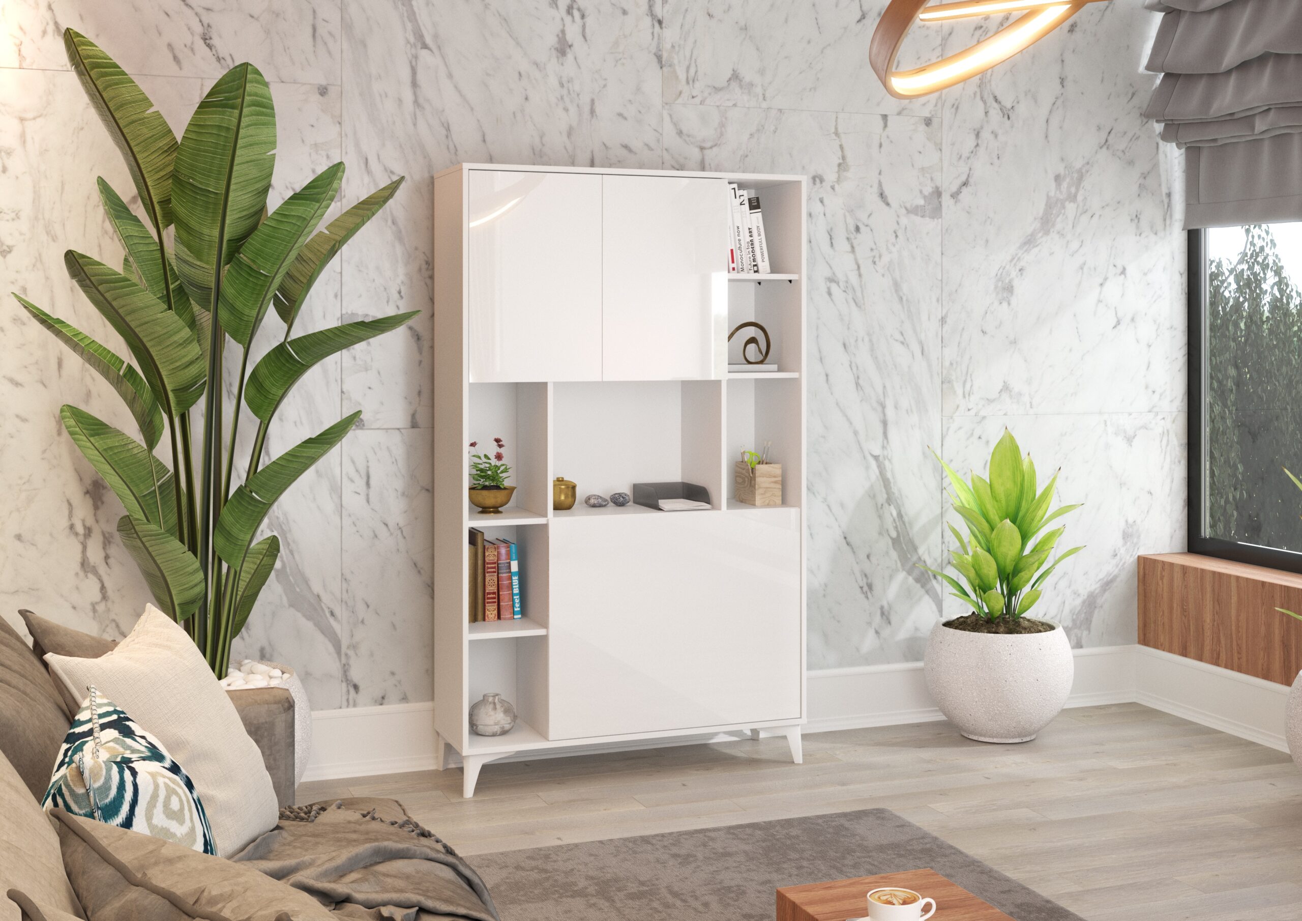 Biurko rozkładane regał MEGAN 2 biały połysk
