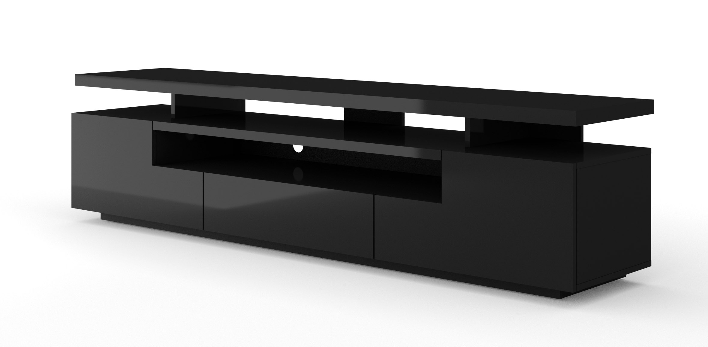 To, co wyróżnia model EVA, to jego unikatowa, warstwowa konstrukcja. 10-centymetrowy prześwit między blatami to dedykowane miejsce na soundbar lub konsolę, które dzięki dołączonemu oświetleniu LED zyskują efektowną oprawę i nowoczesny blask. System czterech otwartych wnęk pozwala na swobodne rozmieszczenie sprzętu RTV, zapewniając mu optymalną cyrkulację powietrza. Jednocześnie dwie boczne szafki i centralna szuflada oferują potężne zaplecze organizacyjne, pozwalając ukryć wszystko, co mogłoby zakłócić nieskazitelny porządek w strefie wypoczynkowej.