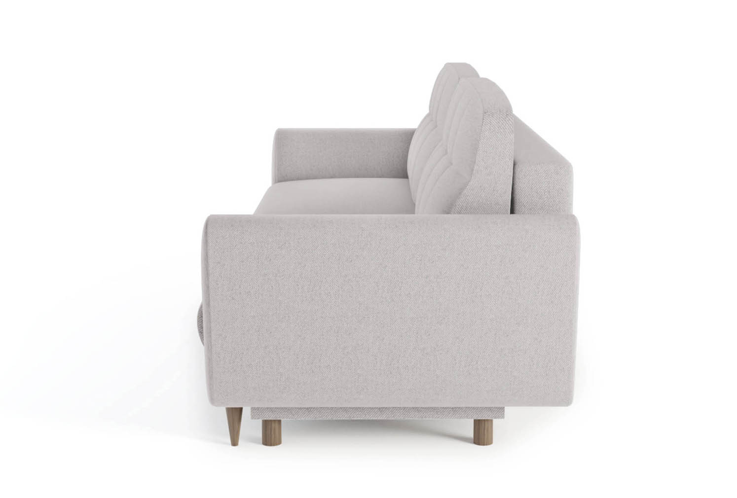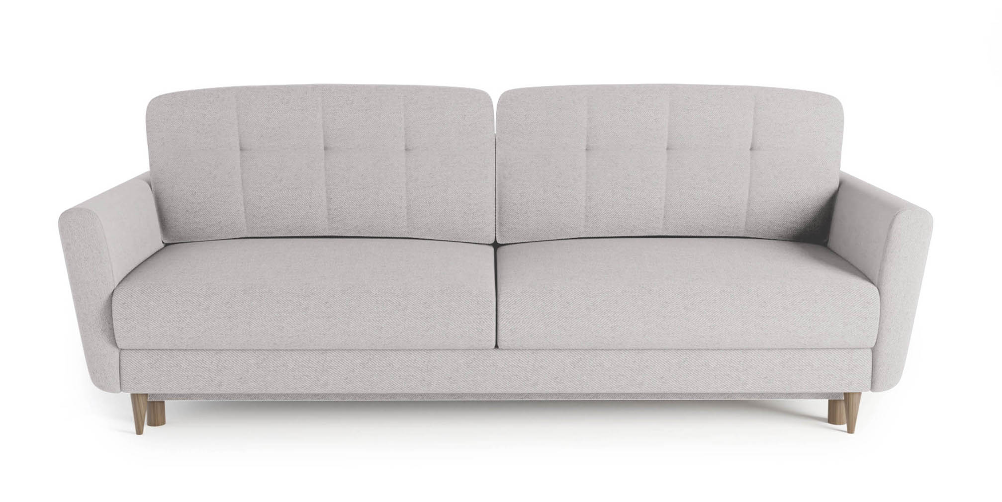 Kanapa Kristi to kwintesencja nowoczesnego szyku, która odmieni serce Twojego salonu. Połączenie szlachetnego, szaro-beżowego melanżu z naturalnymi dębowymi nóżkami tworzy harmonijną całość, idealną do wnętrz w stylu skandynawskim. Dzięki funkcji rozkładania i dużej powierzchni spania, mebel w kilka chwil staje się wygodnym łóżkiem dla gości, a wbudowany pojemnik pozwala utrzymać nienaganny porządek. Wybierz jakość popartą solidnym drewnianym stelażem i poczuj wyjątkową miękkość pikowanych poduszek. Pozwól sobie na luksusowy odpoczynek, na który zasługujesz.