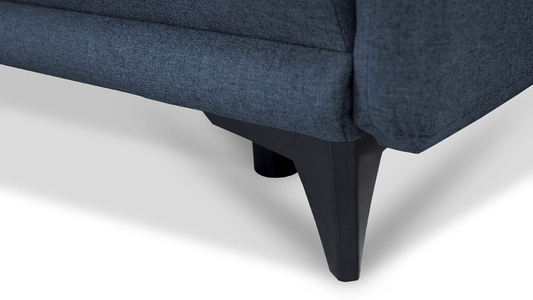 Nowoczesny design kanapy podkreślają smukłe, czarne nóżki, które unoszą bryłę mebla na wysokość 12 cm. Taki zabieg nie tylko nadaje całości wizualnej lekkości, ale jest niezwykle praktyczny w codziennej pielęgnacji domu. Prześwit ten pozwala robotom sprzątającym na swobodny wjazd pod mebel, eliminując problem gromadzącego się kurzu w trudno dostępnych miejscach. Wybierając granatową kanapę La Rose, inwestujesz w ponadczasowe piękno, rzemieślniczą solidność oraz spokój ducha, jaki dają nowoczesne materiały odporne na codzienne wyzwania.