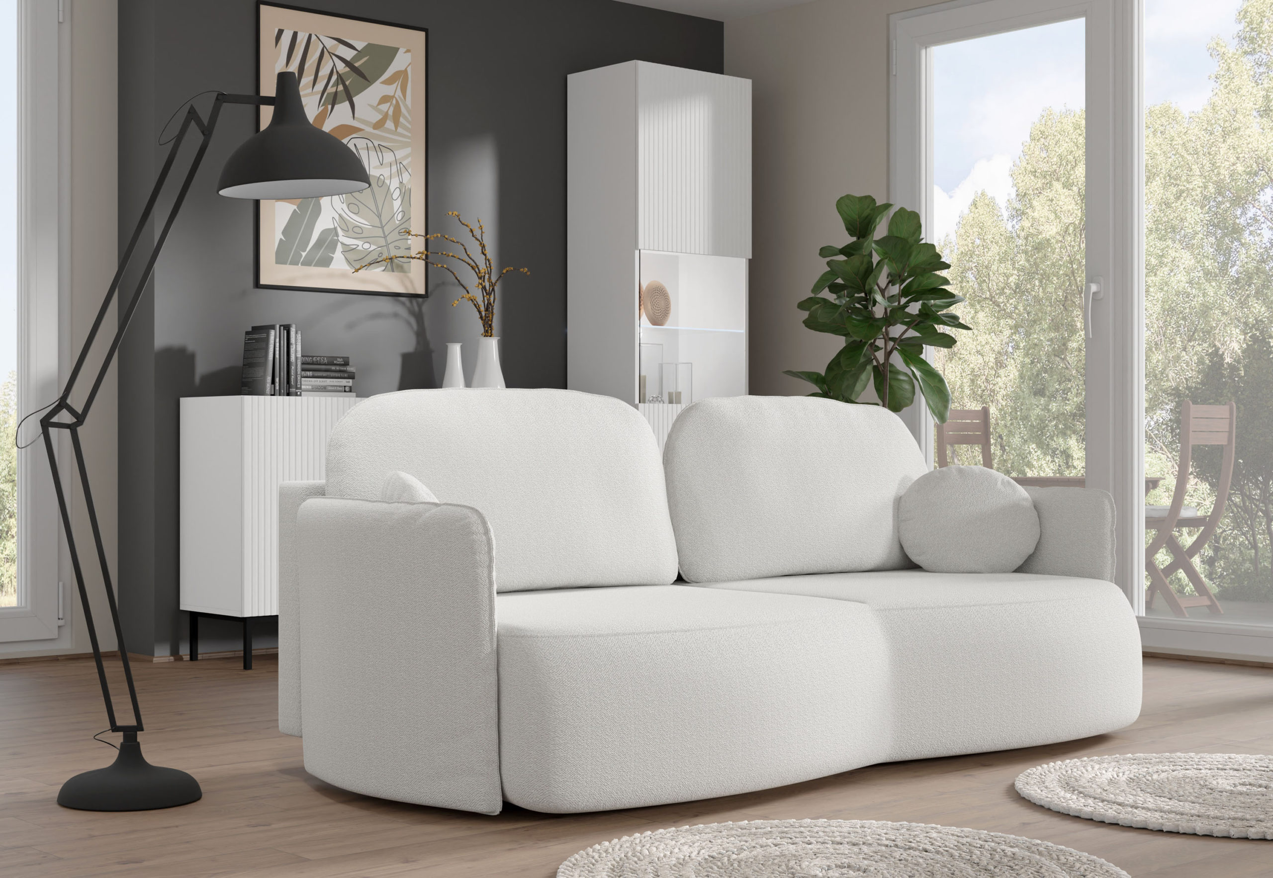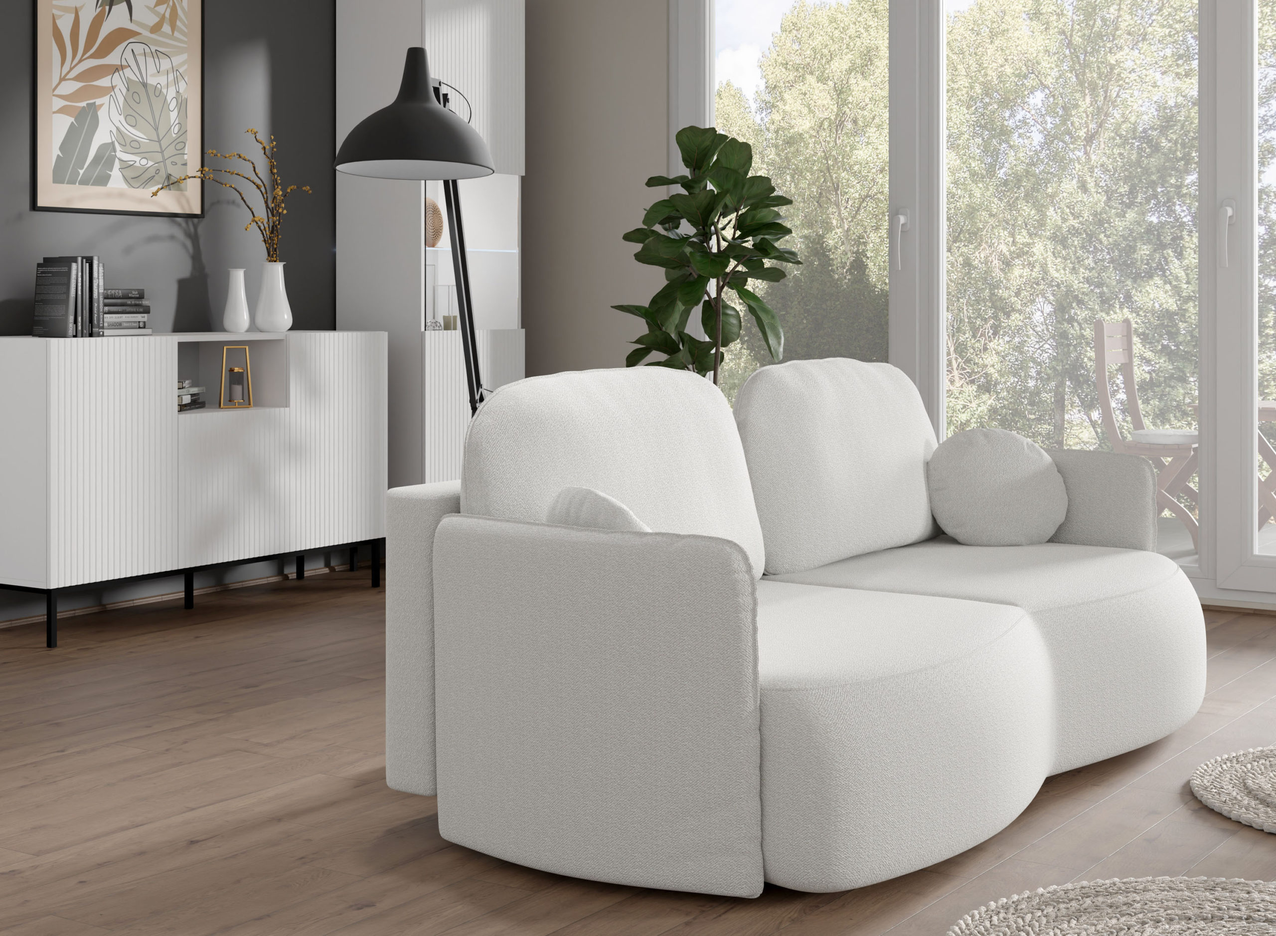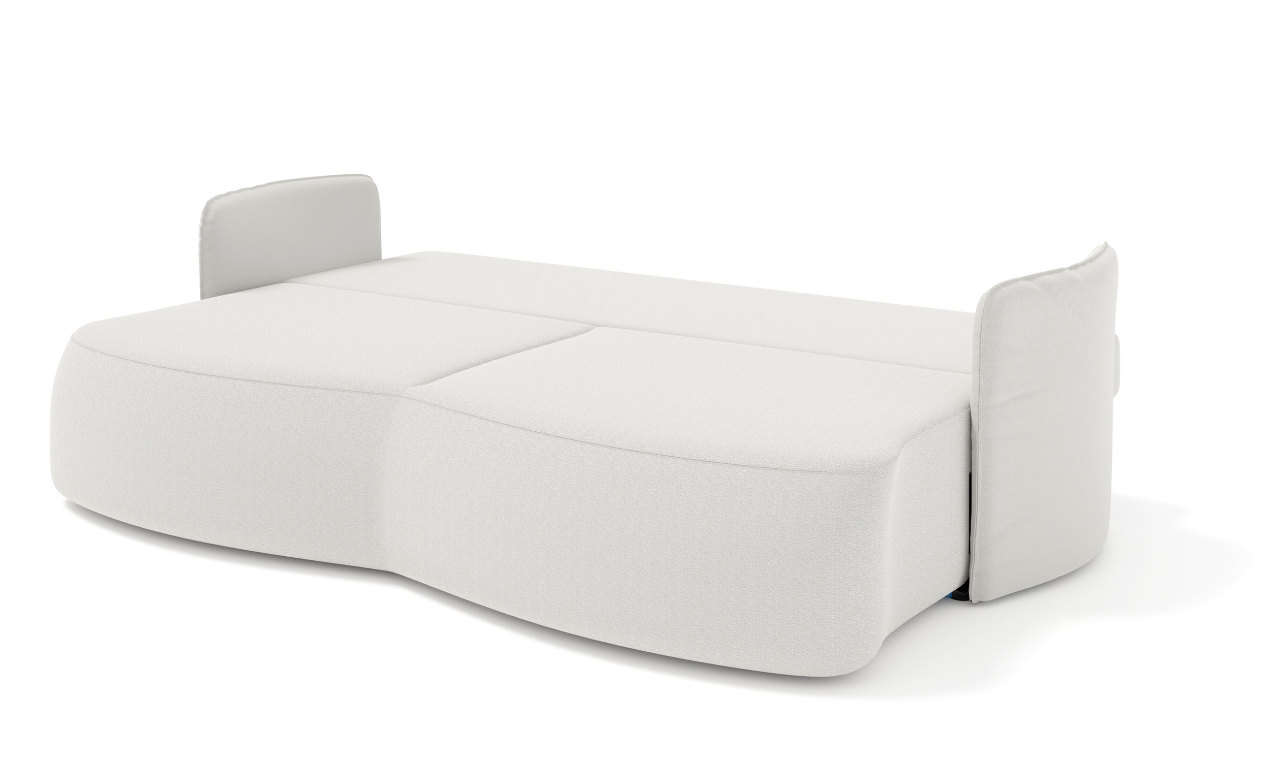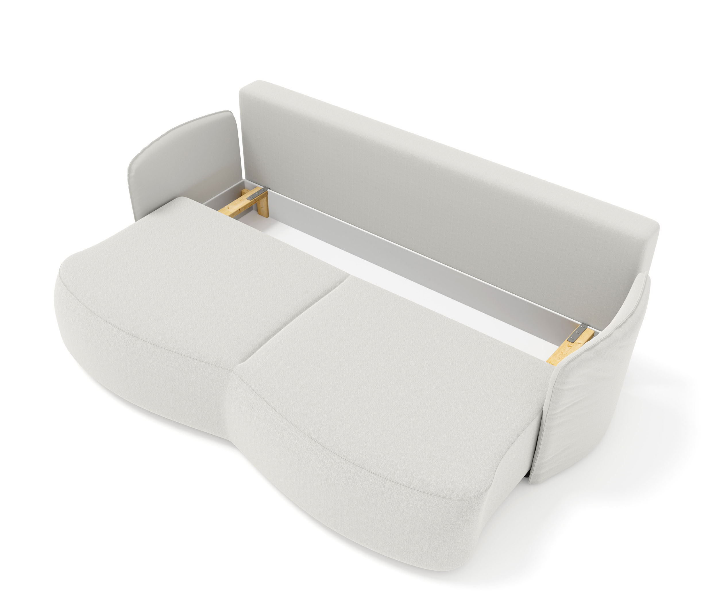 Funkcjonalność kanapy LOREN wykracza poza standardowy wypoczynek dzienny. Dzięki intuicyjnemu mechanizmowi, sofa w kilka sekund zamienia się w wygodne łóżko o powierzchni 145×200 cm, co odpowiada standardom sypialnianych materacy dwuosobowych. Pod siedziskiem ukryto przestronny schowek na pościel, który ułatwia utrzymanie porządku w salonie, oferując miejsce na dodatkowe kołdry czy poduszki. To idealne rozwiązanie do domów, w których salon często pełni funkcję sypialni dla gości lub domowników.