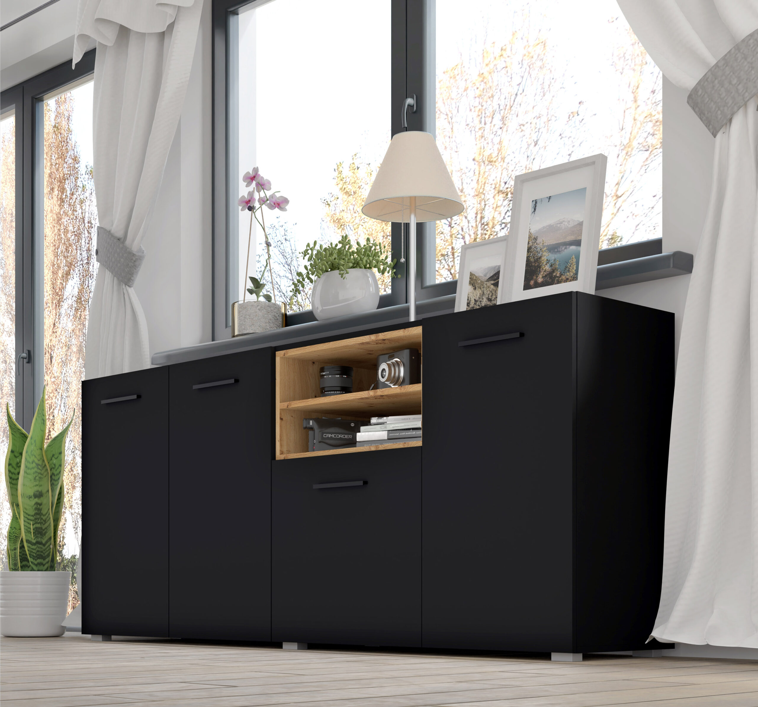 Komoda ANETTE L 151 cm czarny mat / dąb artisan