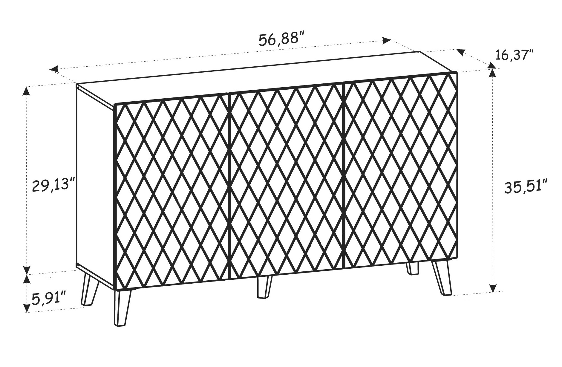 Konstrukcja komody Diuna o szerokości 145 cm została zaprojektowana w sposób maksymalnie ergonomiczny, aby sprostać wymaganiom współczesnego stylu życia. Za trzema skrzydłami drzwi kryje się aż sześć zamykanych półek, co gwarantuje doskonałą organizację domowej przestrzeni. Głębokość 42 cm pozwala na swobodne przechowywanie nawet większych przedmiotów – od porcelany po dokumenty – przy jednoczesnym zachowaniu zgrabnej linii mebla, która nie przytłacza salonu czy sypialni. Matowy blat stanowi bezpieczną podstawę dla luksusowych dekoracji, które na tle czarnego połysku prezentują się niezwykle szlachetnie.