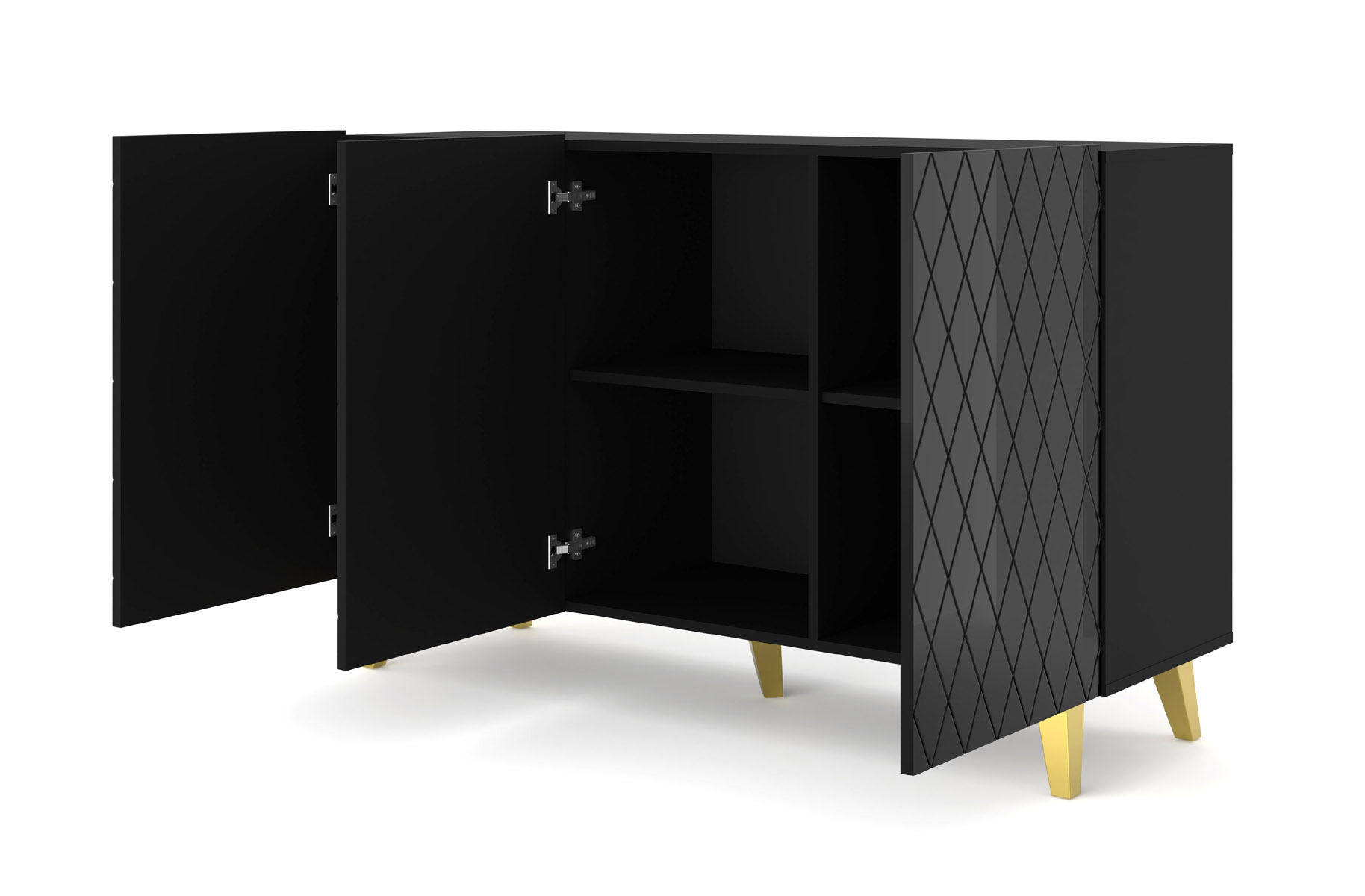 Komoda DIUNA 145 cm 3D na nóżkach czarny połysk