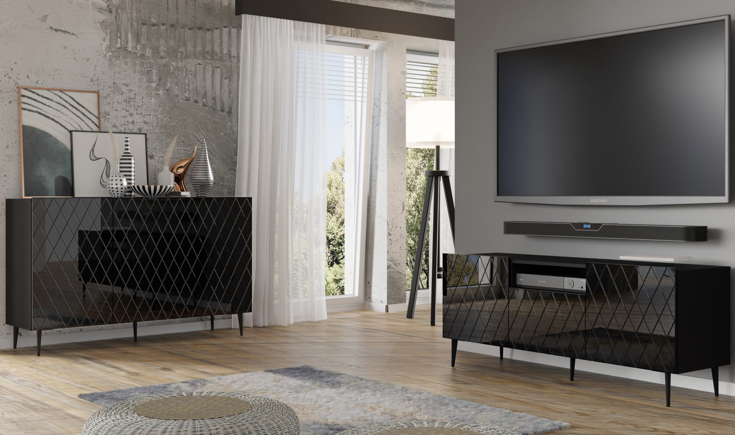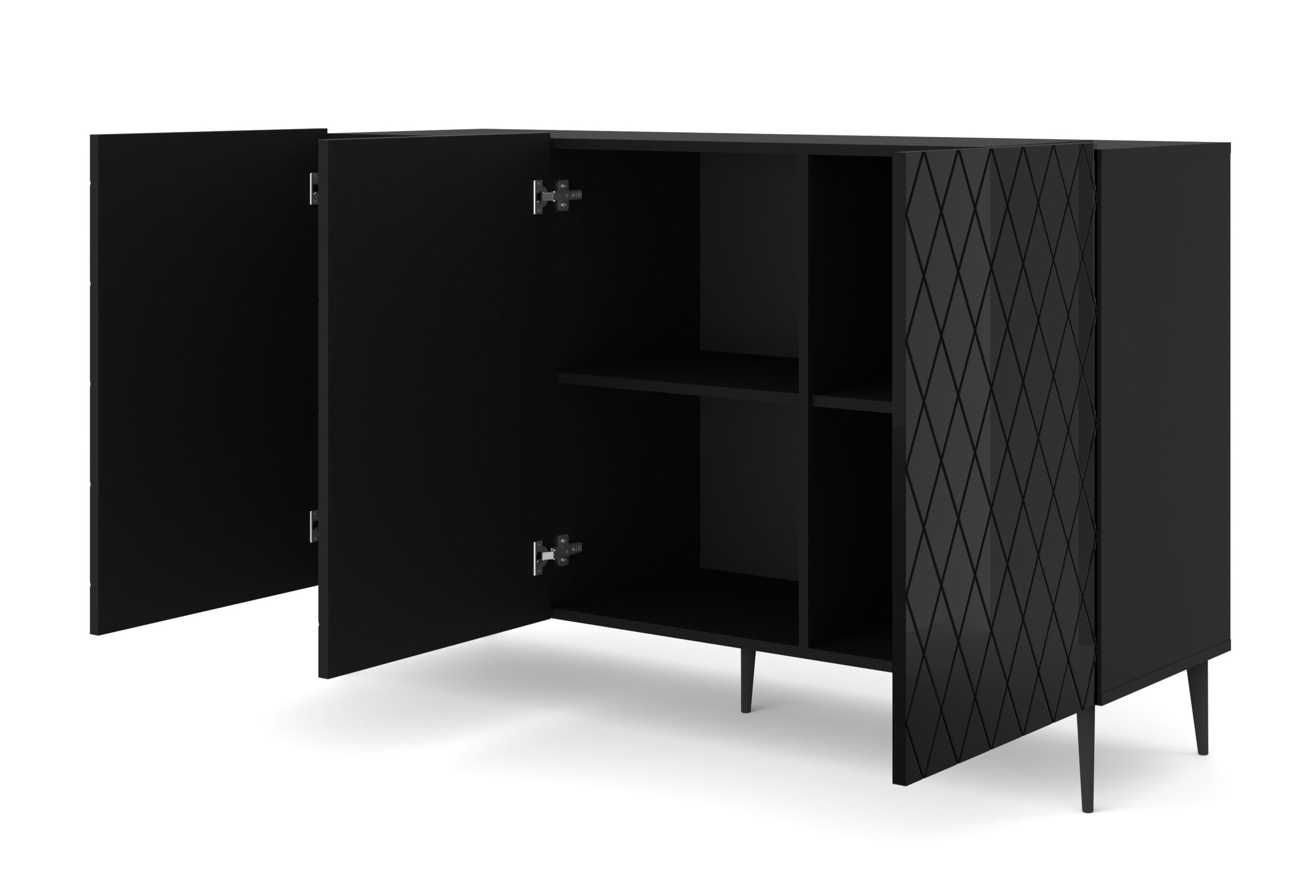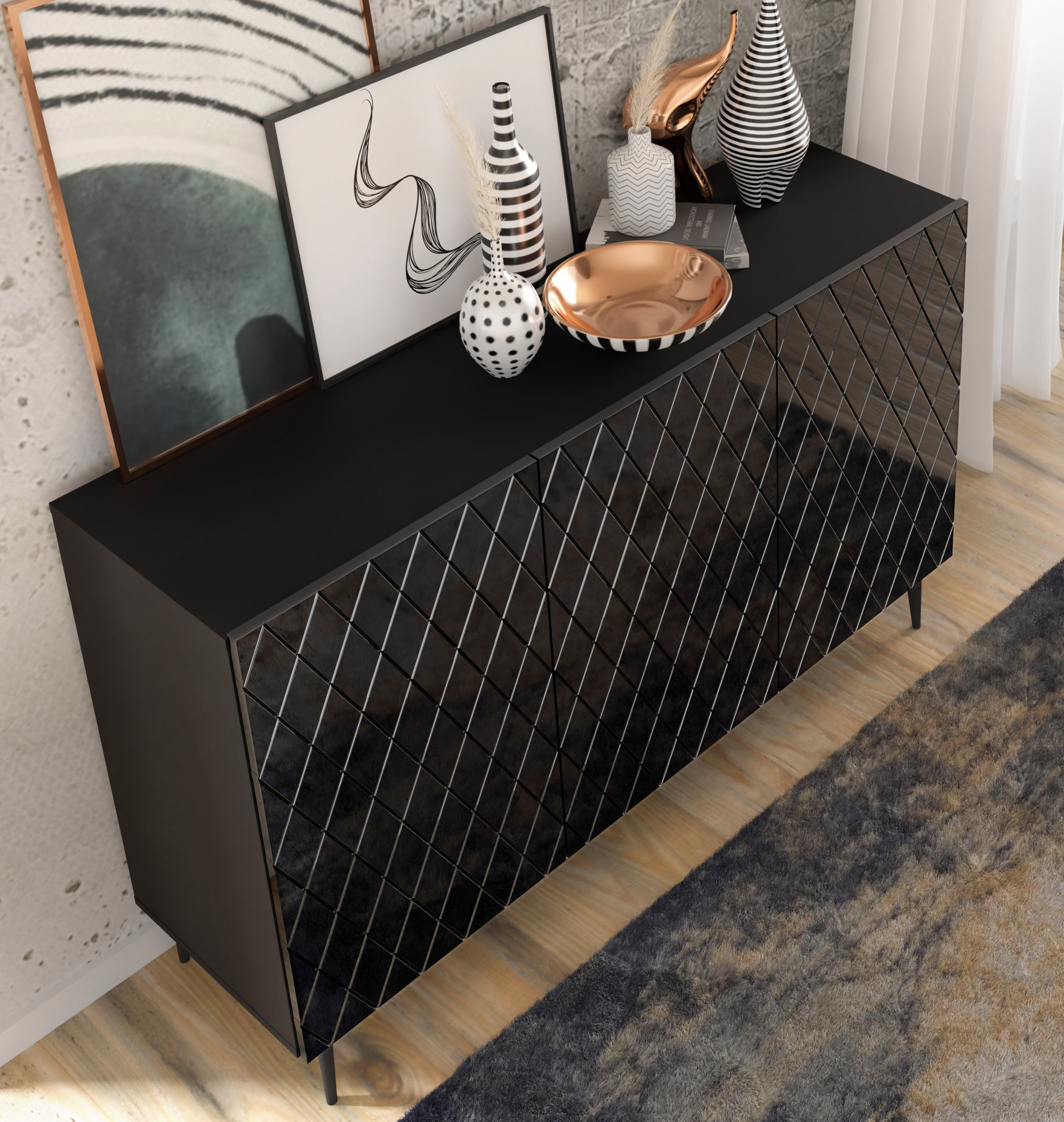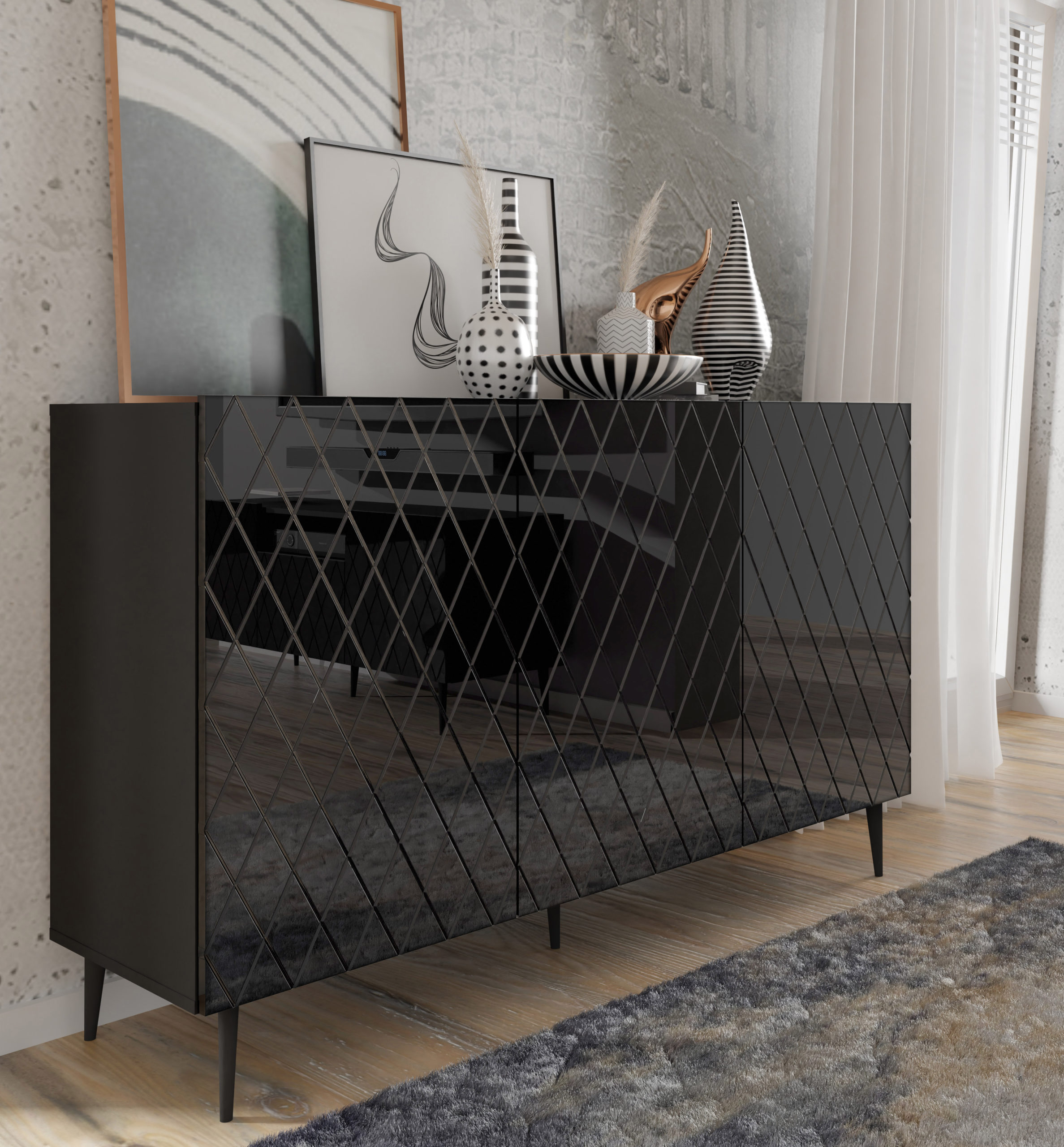 Komoda DIUNA 145 cm 3D na szpilce czarny połysk