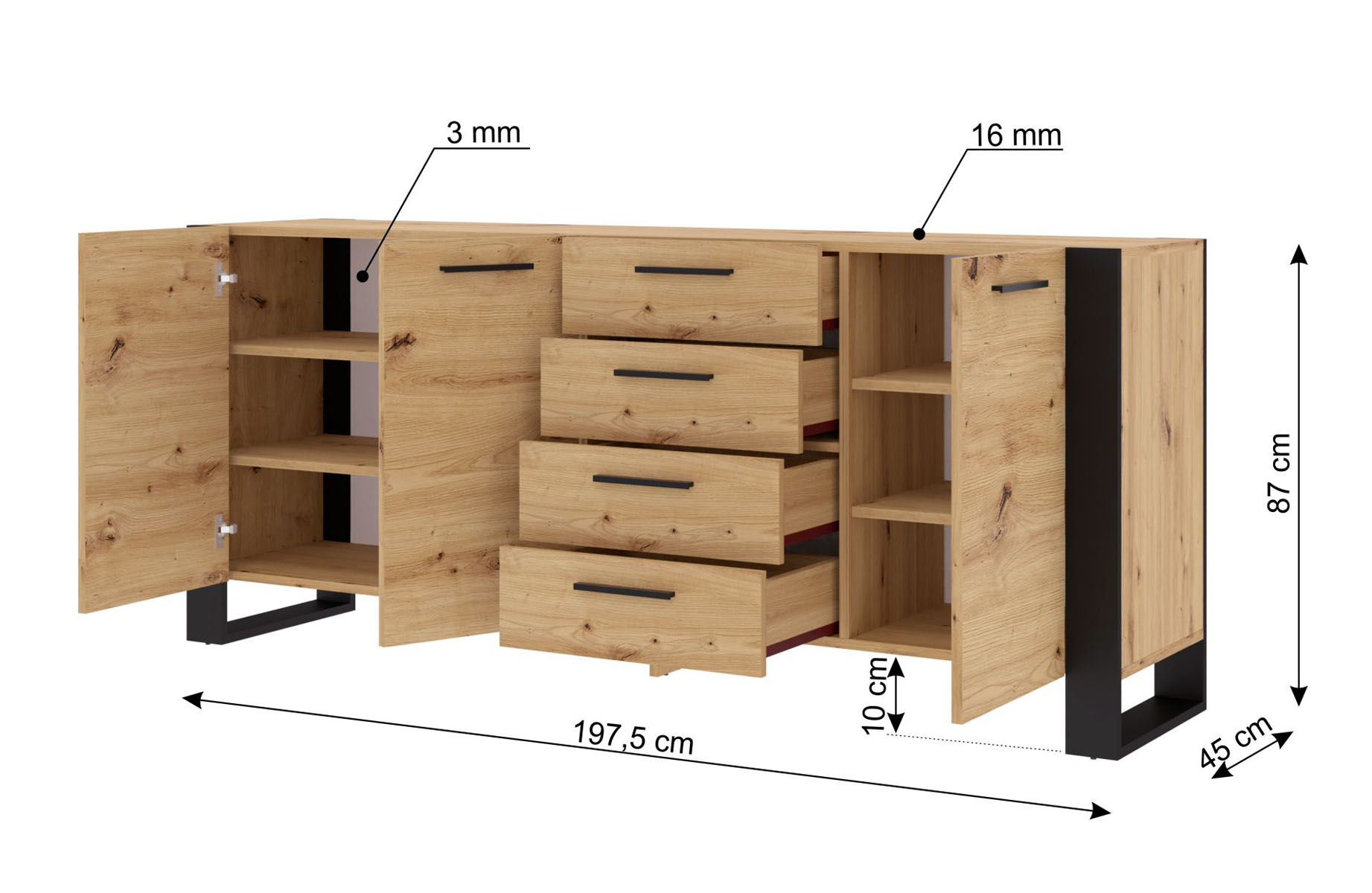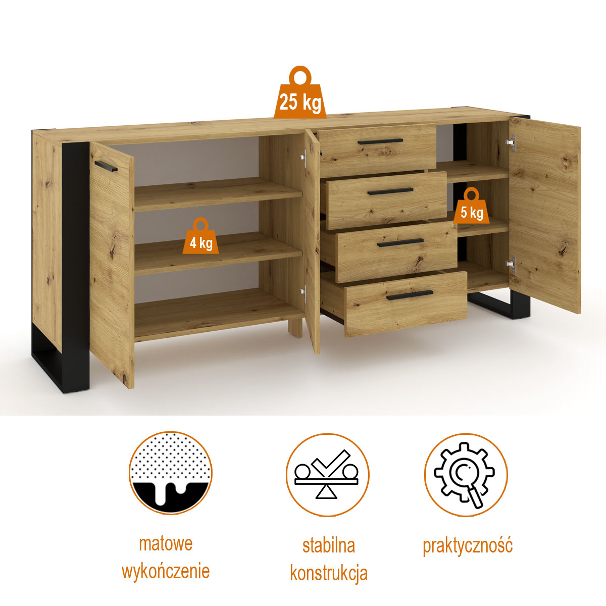 Komoda NUKA K 197 cm dąb artisan czarna stojąca
