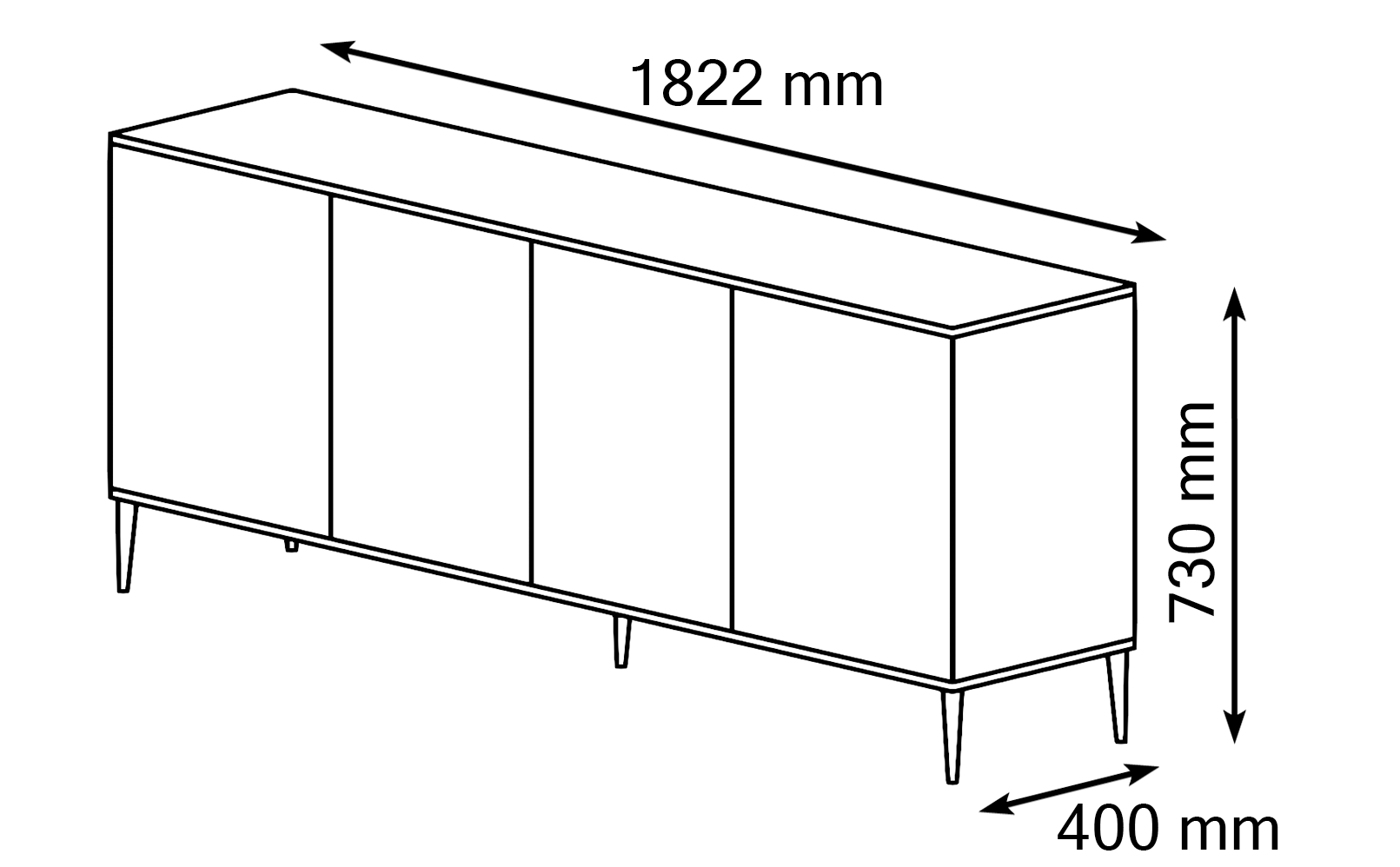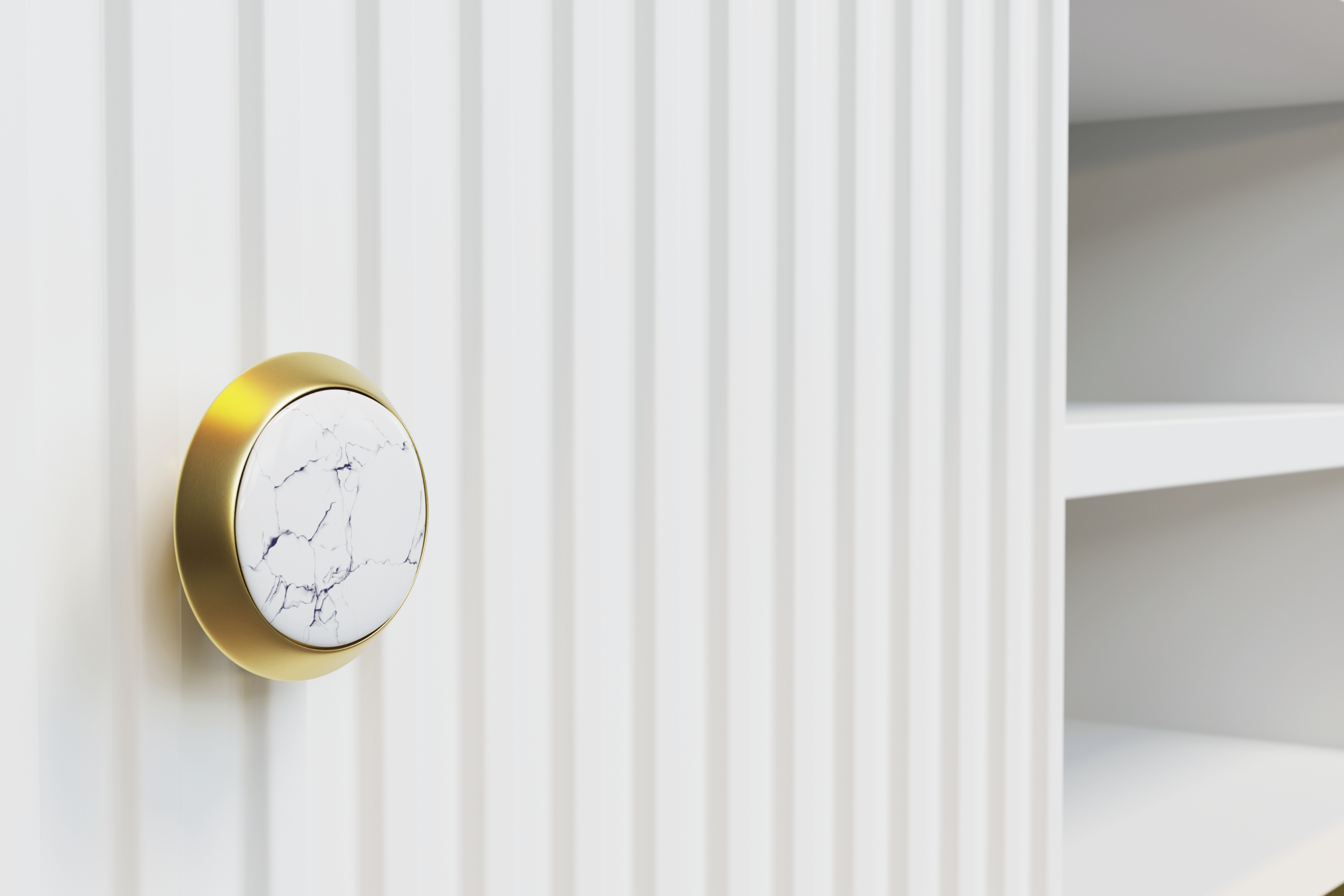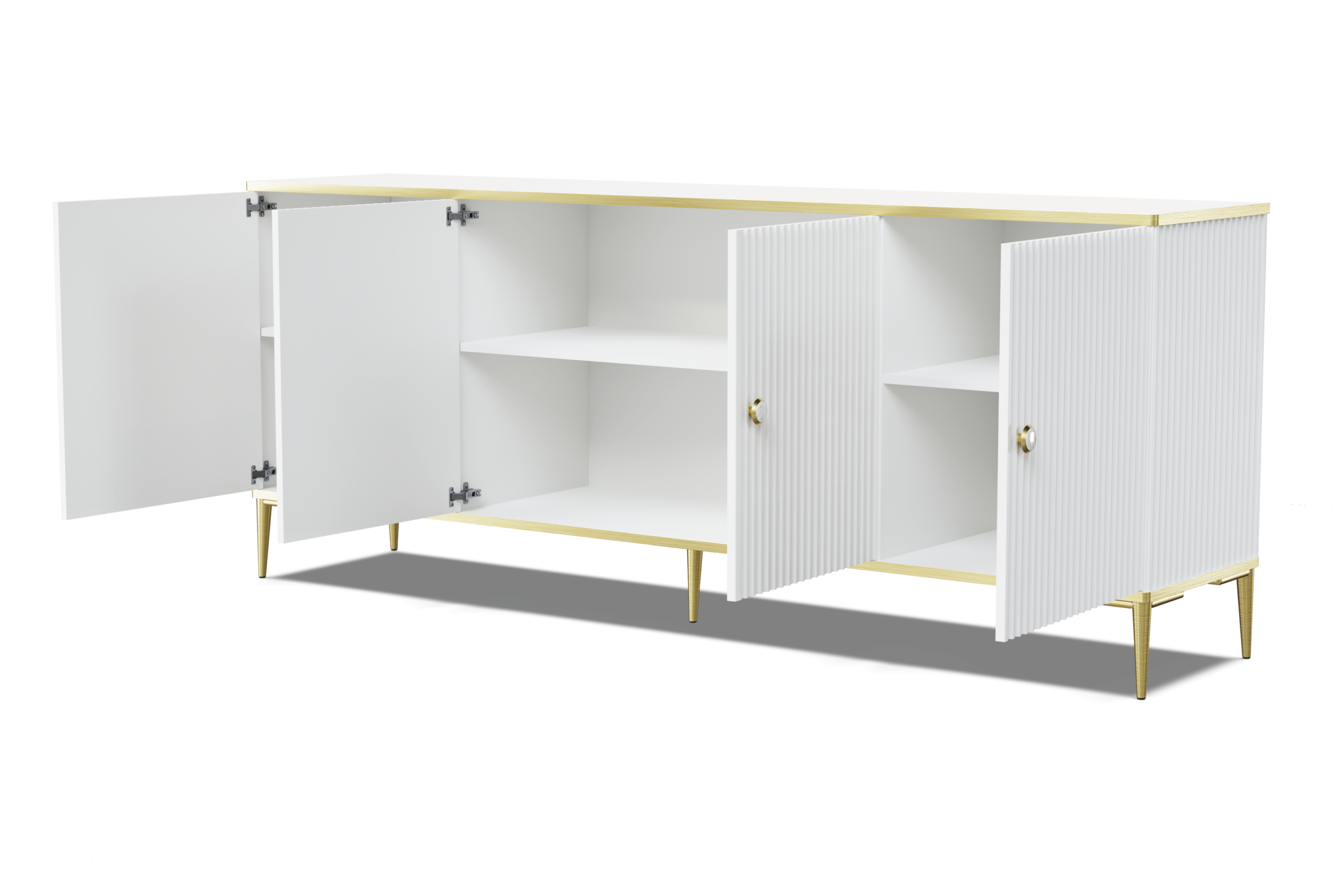 Komoda PETRA 182 cm 4D frezowana biały mat na złotych nóżkach