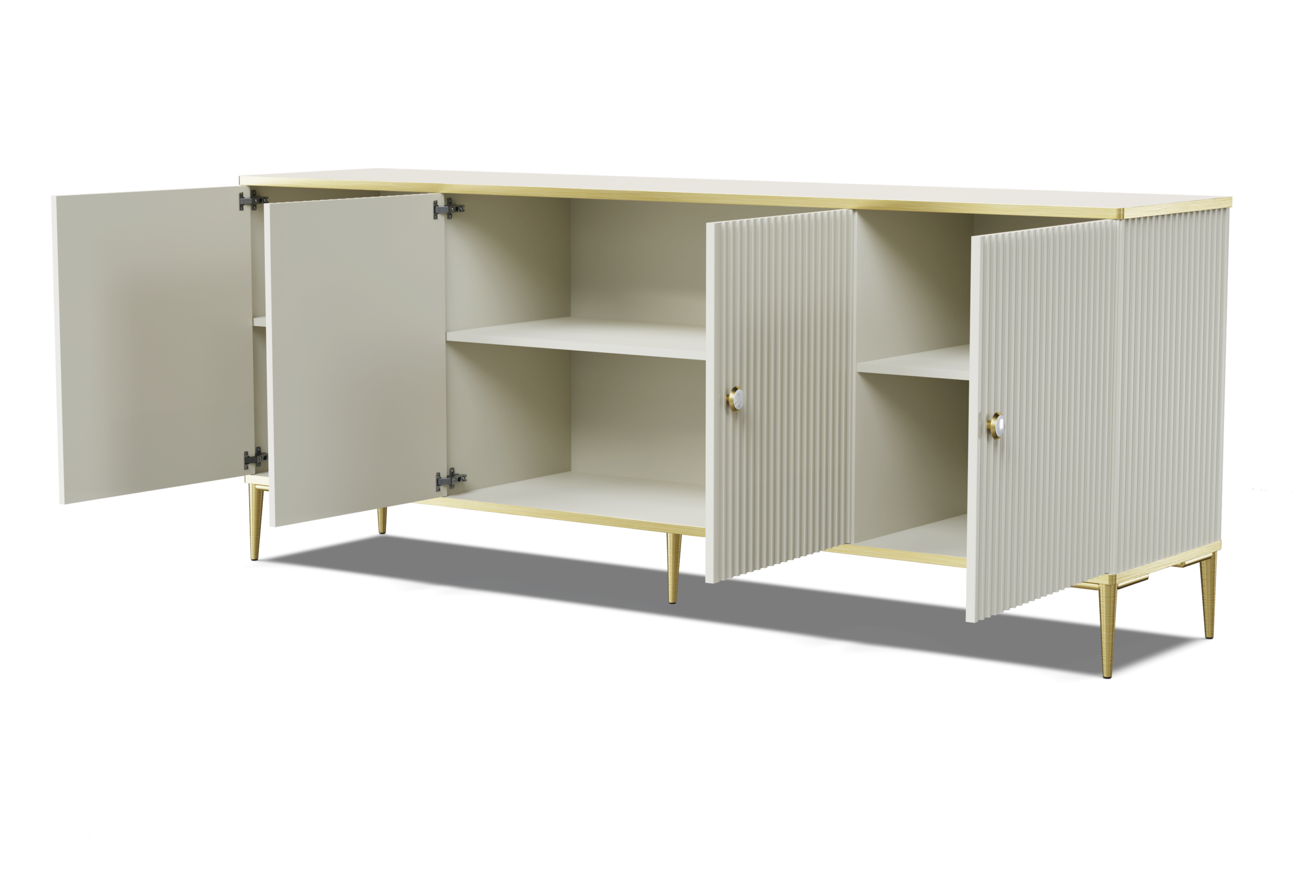 Komoda PETRA 182 cm 4D frezowana kaszmir na złotych nóżkach