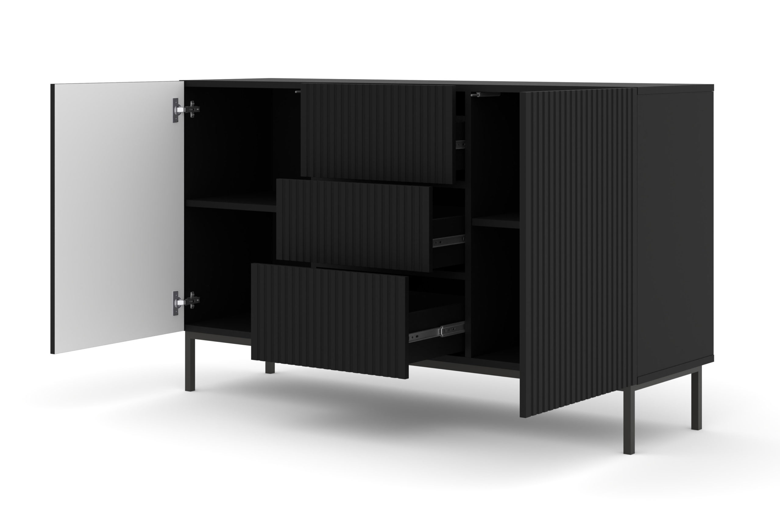 Komoda RAVENNA B 150 cm 2D3S czarny mat czarna rama