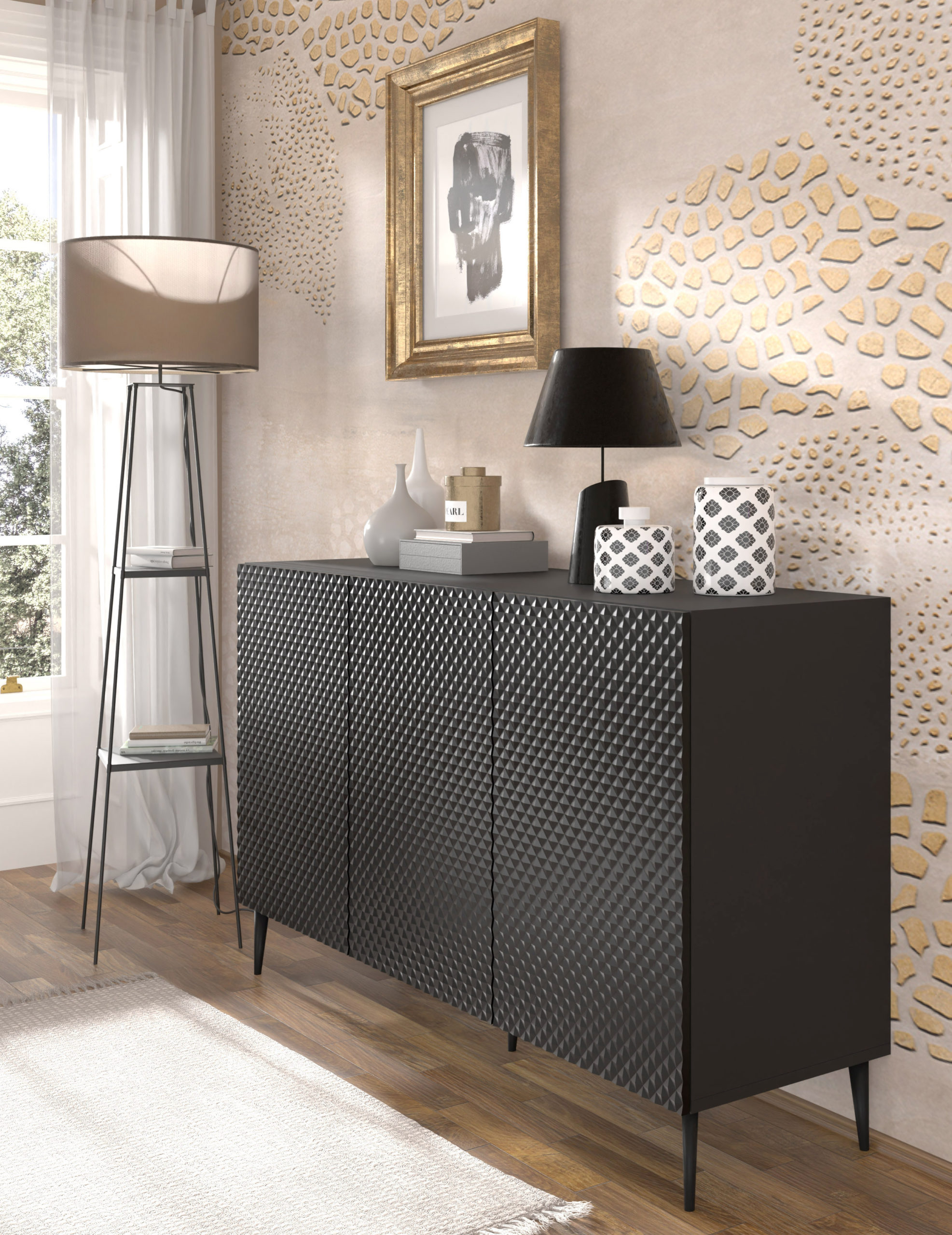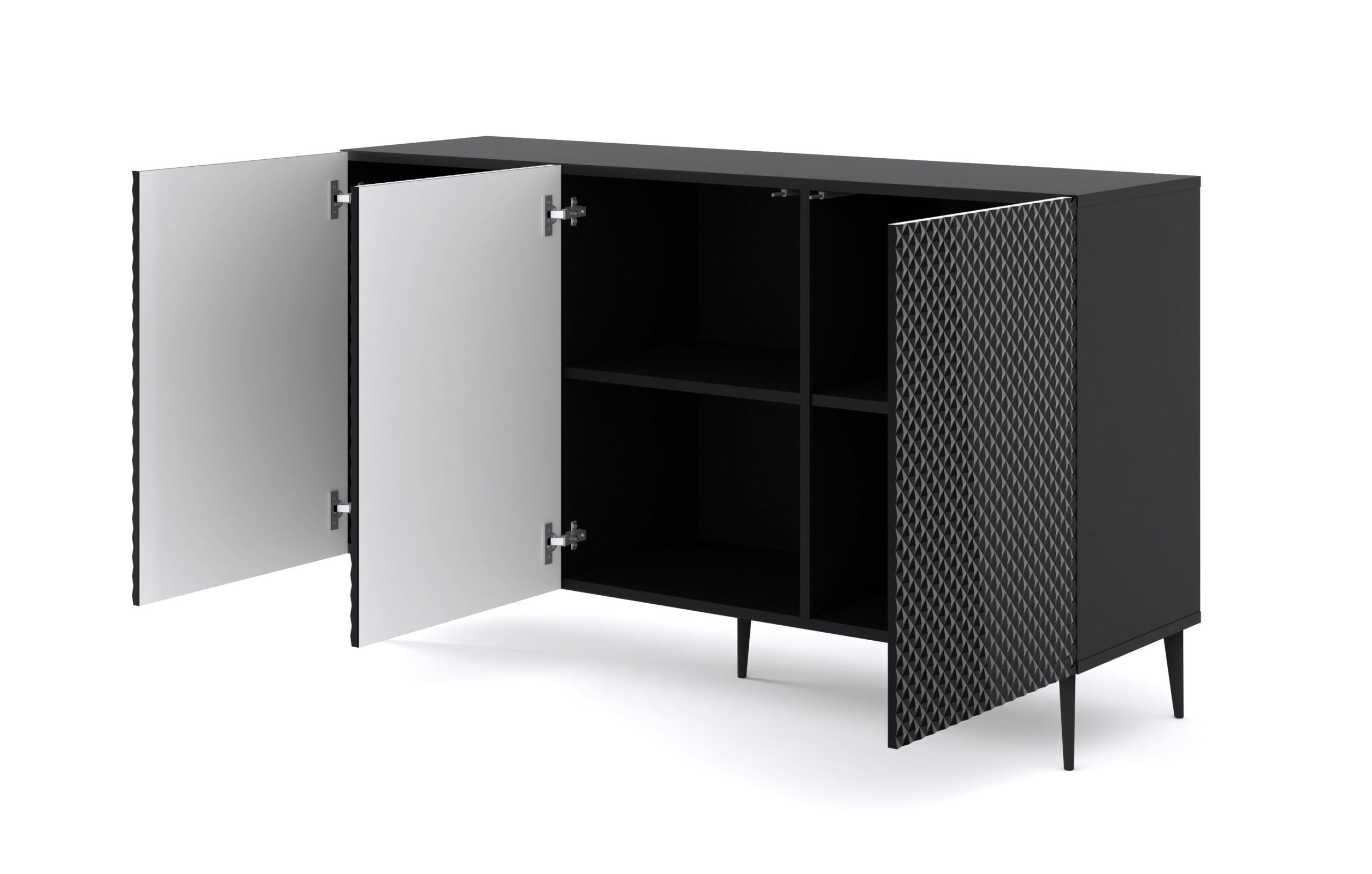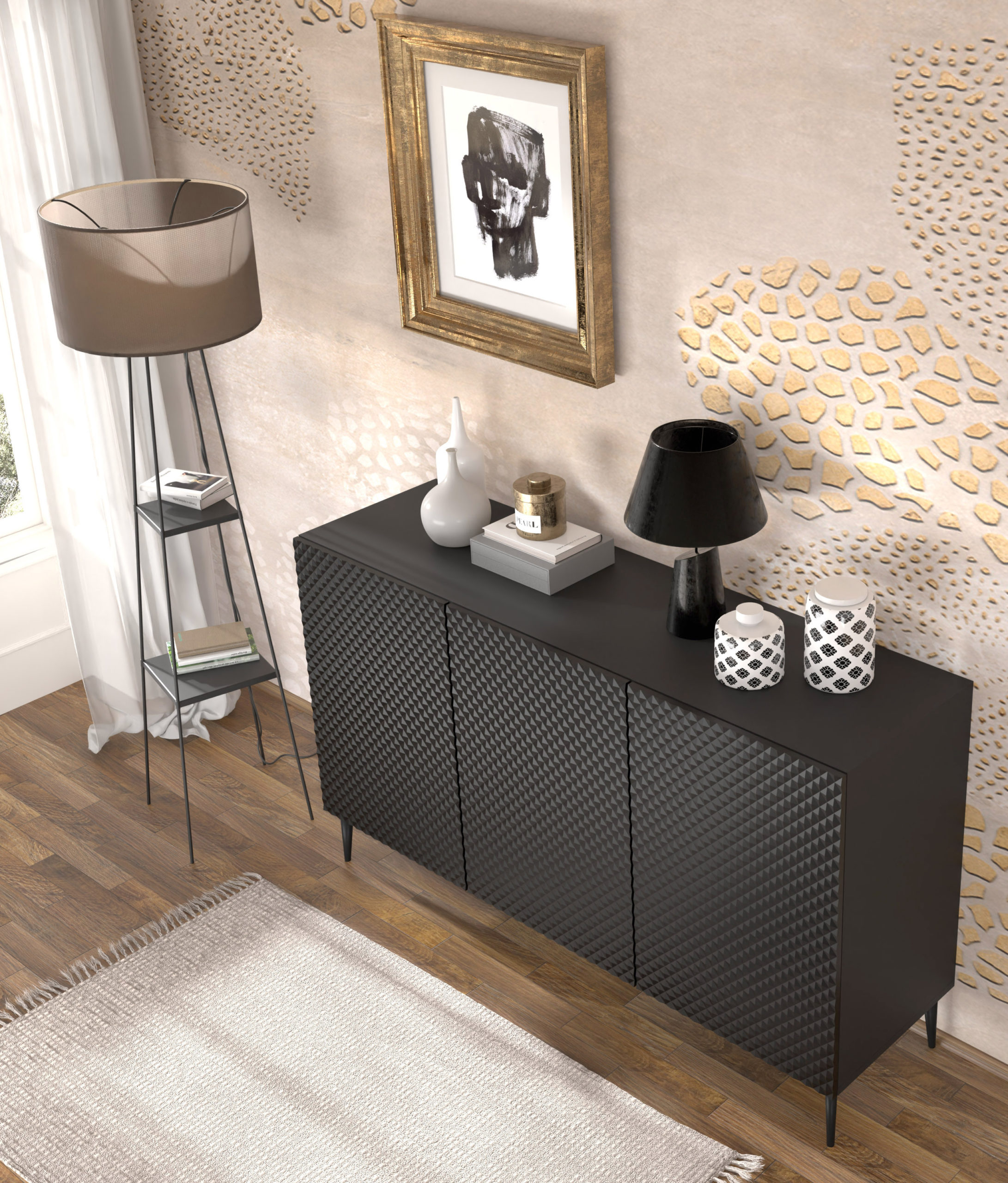 Komoda Ravenna C 150 cm 3D czarny mat / czarny połysk DIAMENT szpilki czarne