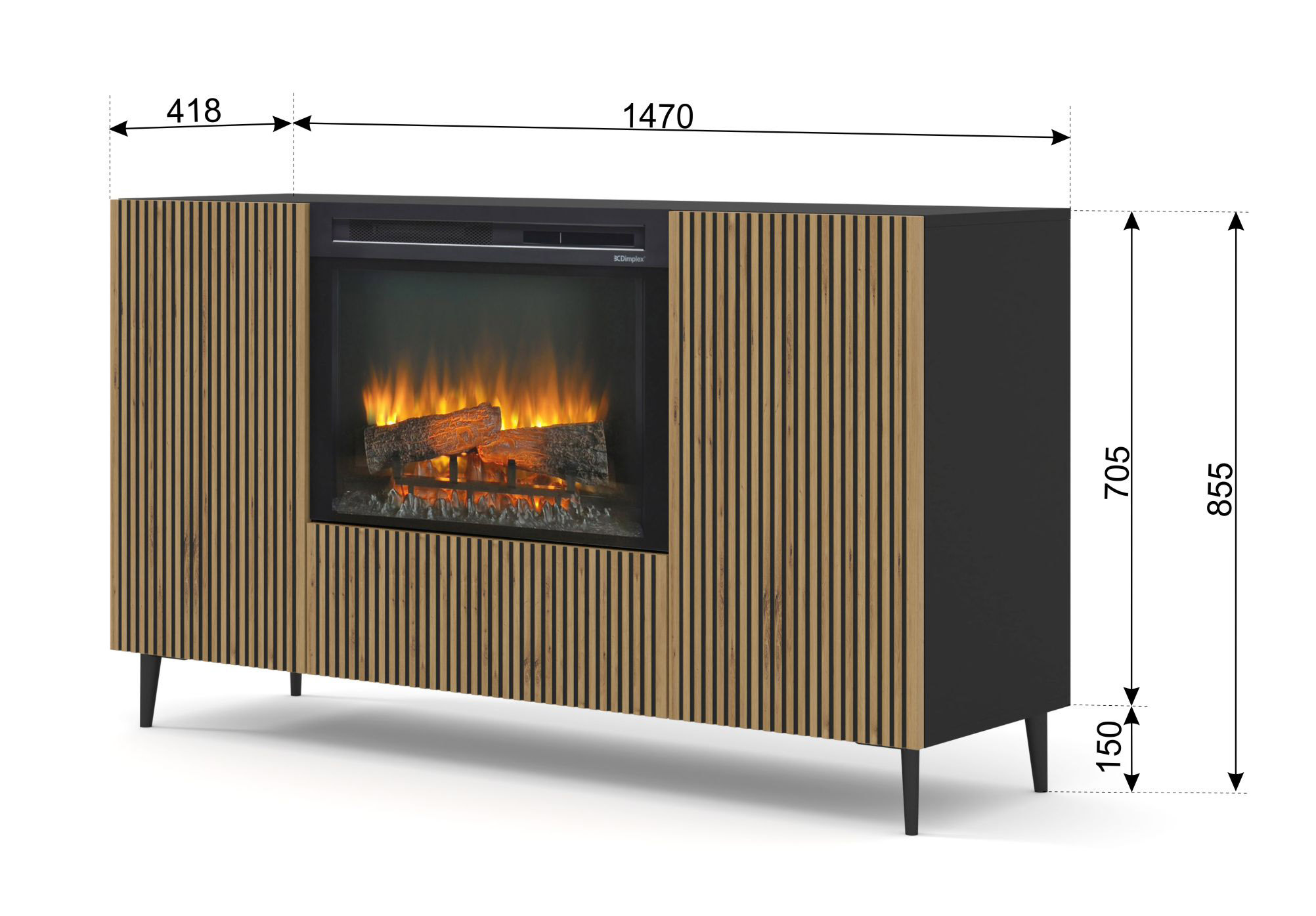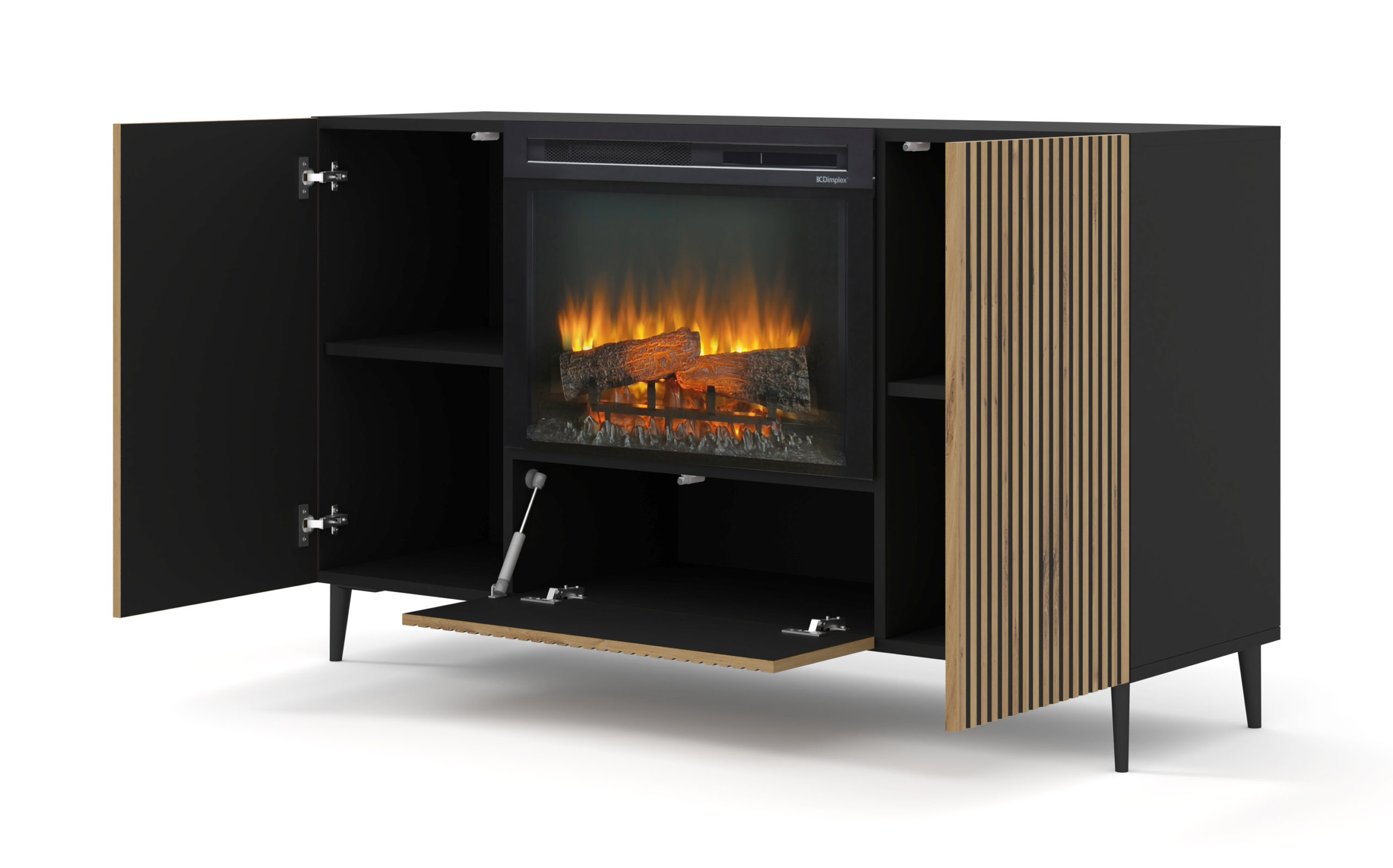 Komoda RAVENNA F 147 cm z kominkiem 2D1K czarny / artisan