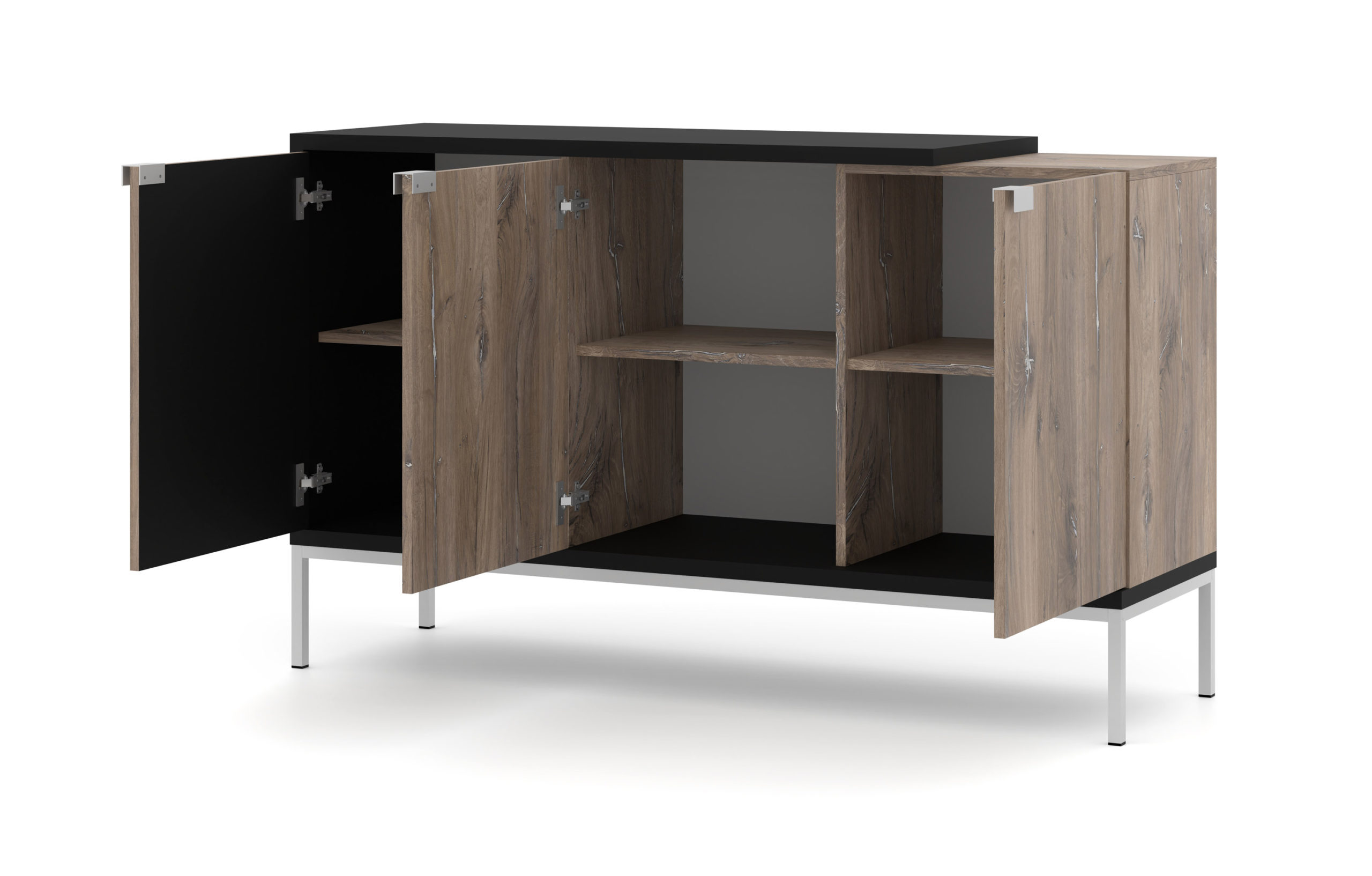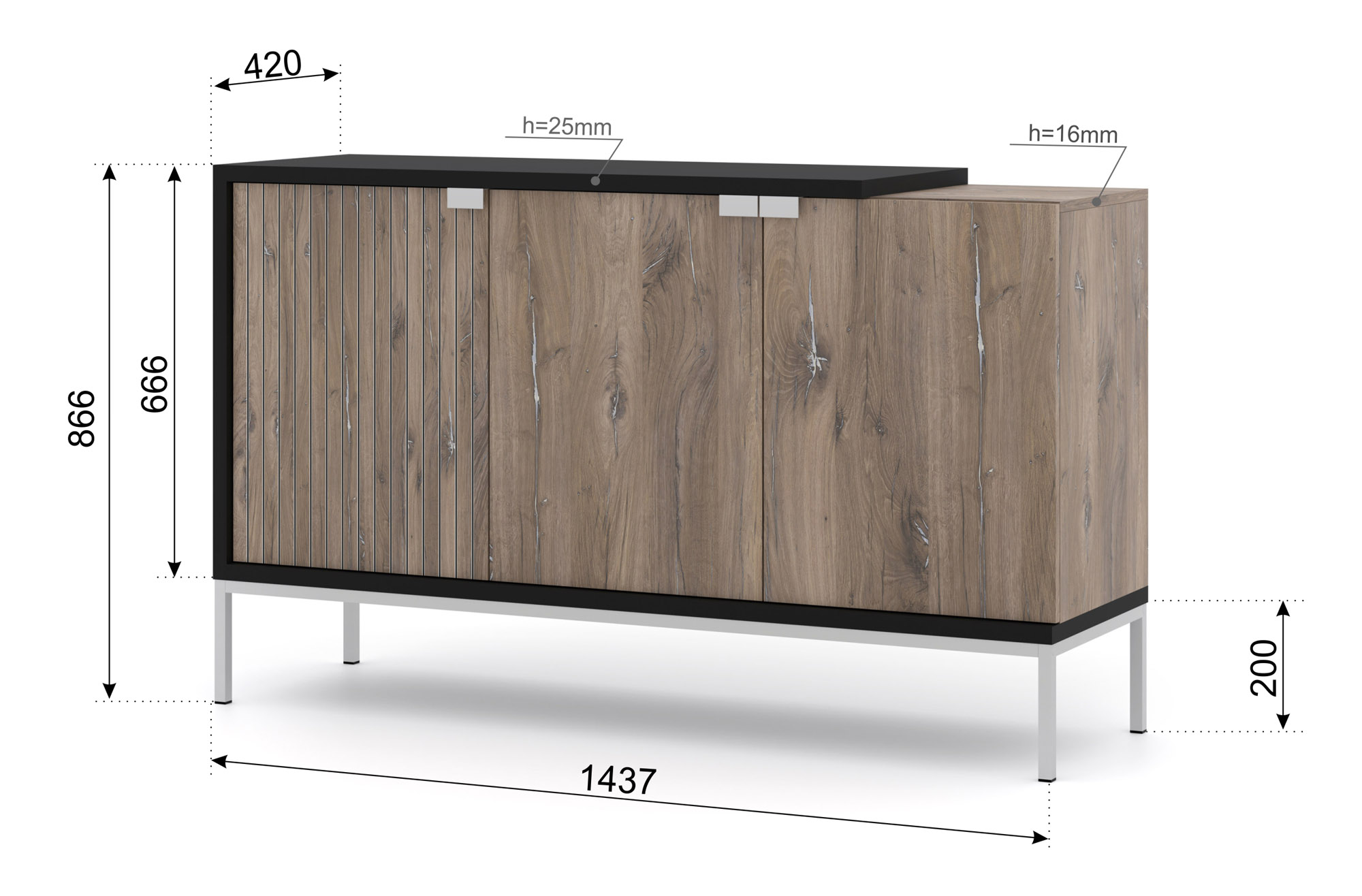 Komoda TOLEDO 143 cm 3D dąb flagstaff / czarny mat + srebrna rama