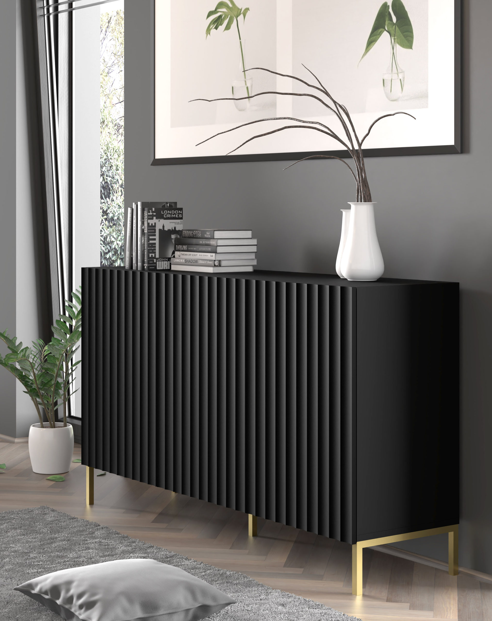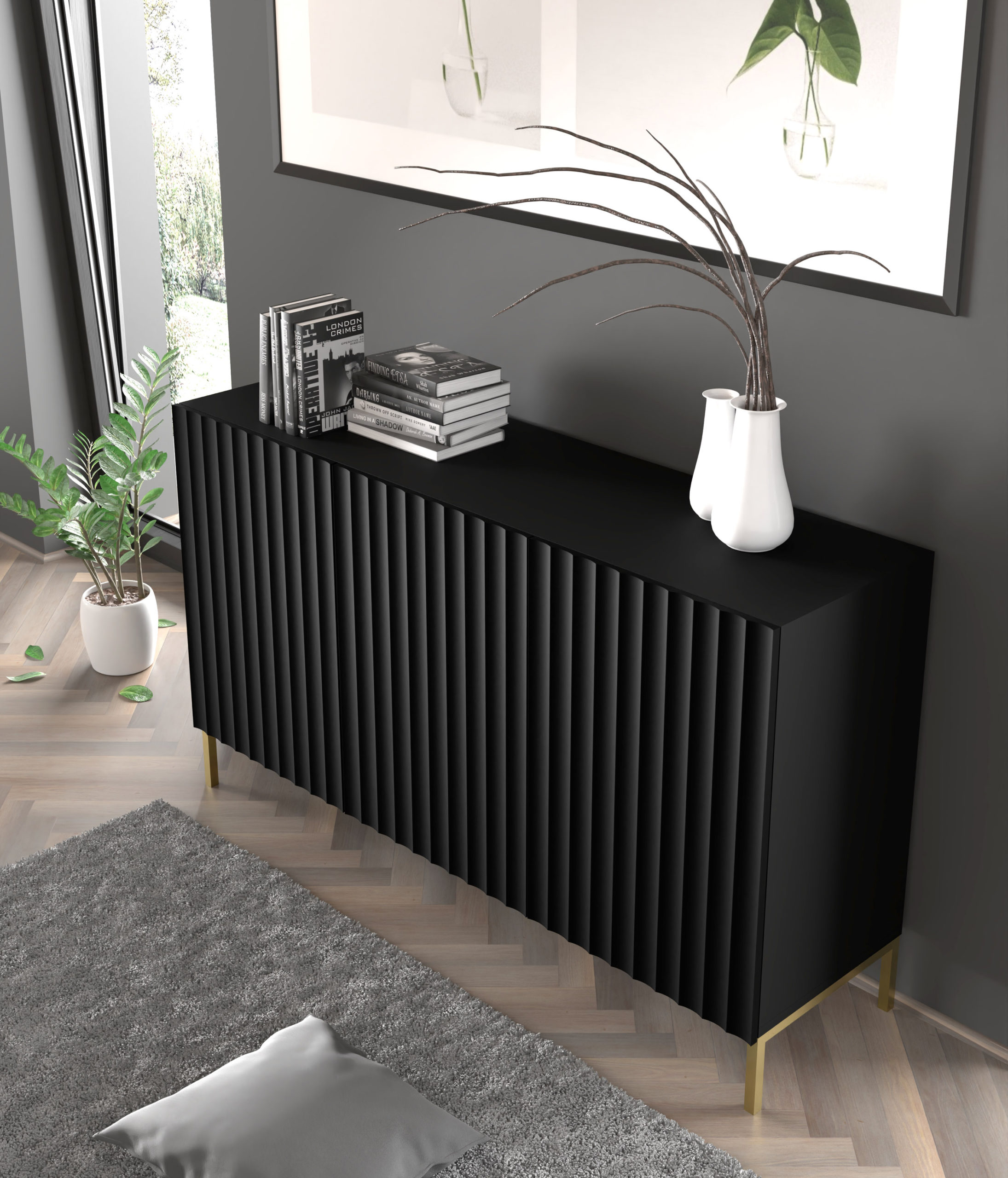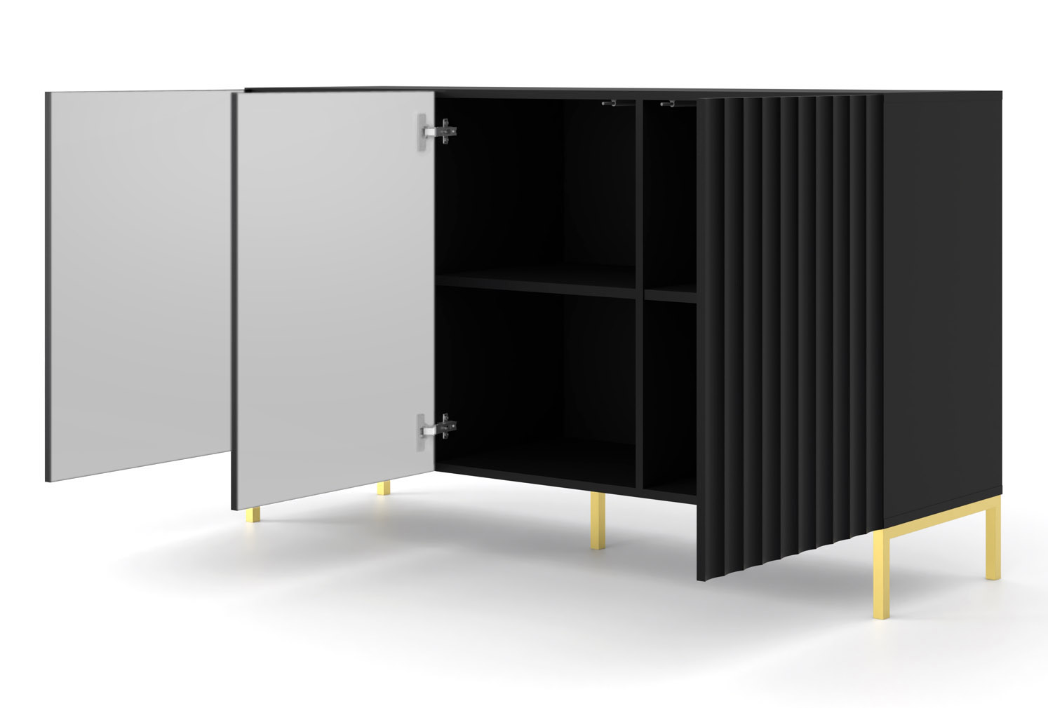 Komoda WAVE 150 cm 3D czarny mat złota rama