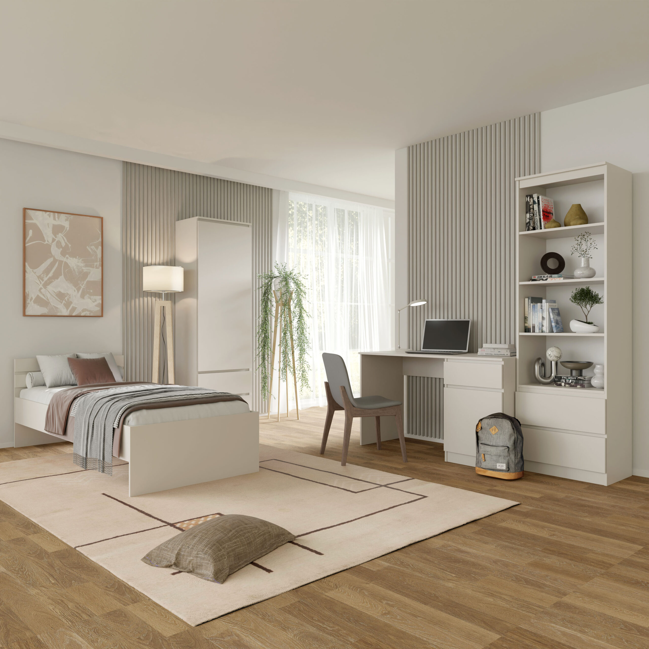 Zaprojektuj swoją osobistą oazę spokoju, wybierając łóżko MAJA w kolorze ciepłego kaszmiru. Ten unikalny odcień to idealny wybór dla osób, które pragną przełamać surowość nowoczesnych wnętrz i wprowadzić do nich więcej przytulności. Dzięki subtelnej barwie i matowemu wykończeniu, mebel prezentuje się niezwykle szlachetnie, stając się fundamentem aranżacji w stylu modern lub skandynawskim. Optymalne wymiary sprawiają, że łóżko bez trudu odnajdzie się w kameralnych sypialniach i pokojach młodzieżowych, nie przytłaczając przestrzeni, a dodając jej wyrafinowanego charakteru.