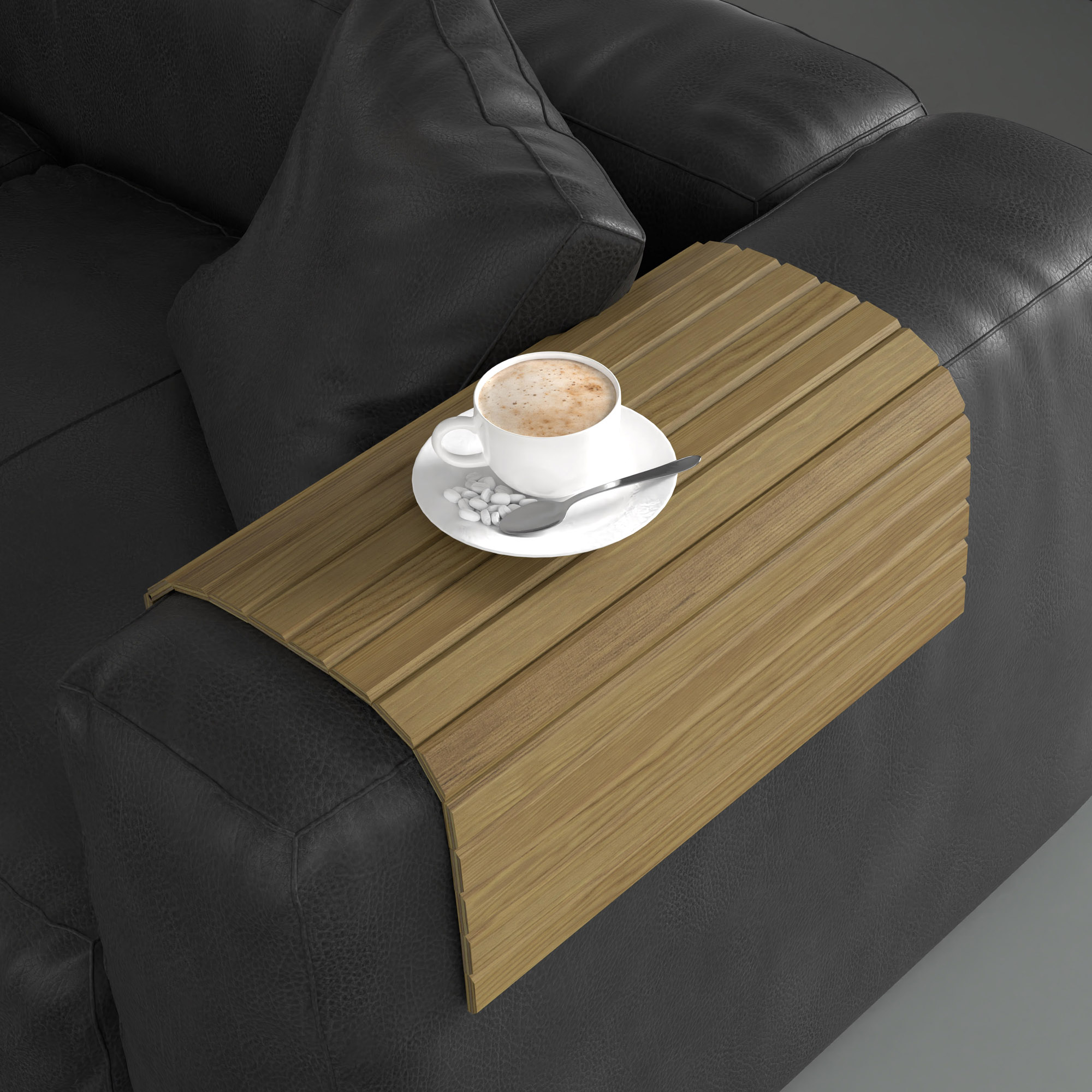 Wszechstronność tego dodatku wykracza poza podłokietnik sofy. Nakładka o wymiarach 44 x 40 cm doskonale sprawdza się jako mobilna podkładka na łóżko, zapewniając stabilną bazę pod talerz z przekąskami czy telefon. Po skończonym użytkowaniu wystarczy ją zwinąć i schować – zajmuje minimalną ilość miejsca, co czyni ją idealnym gadżetem do mniejszych mieszkań.