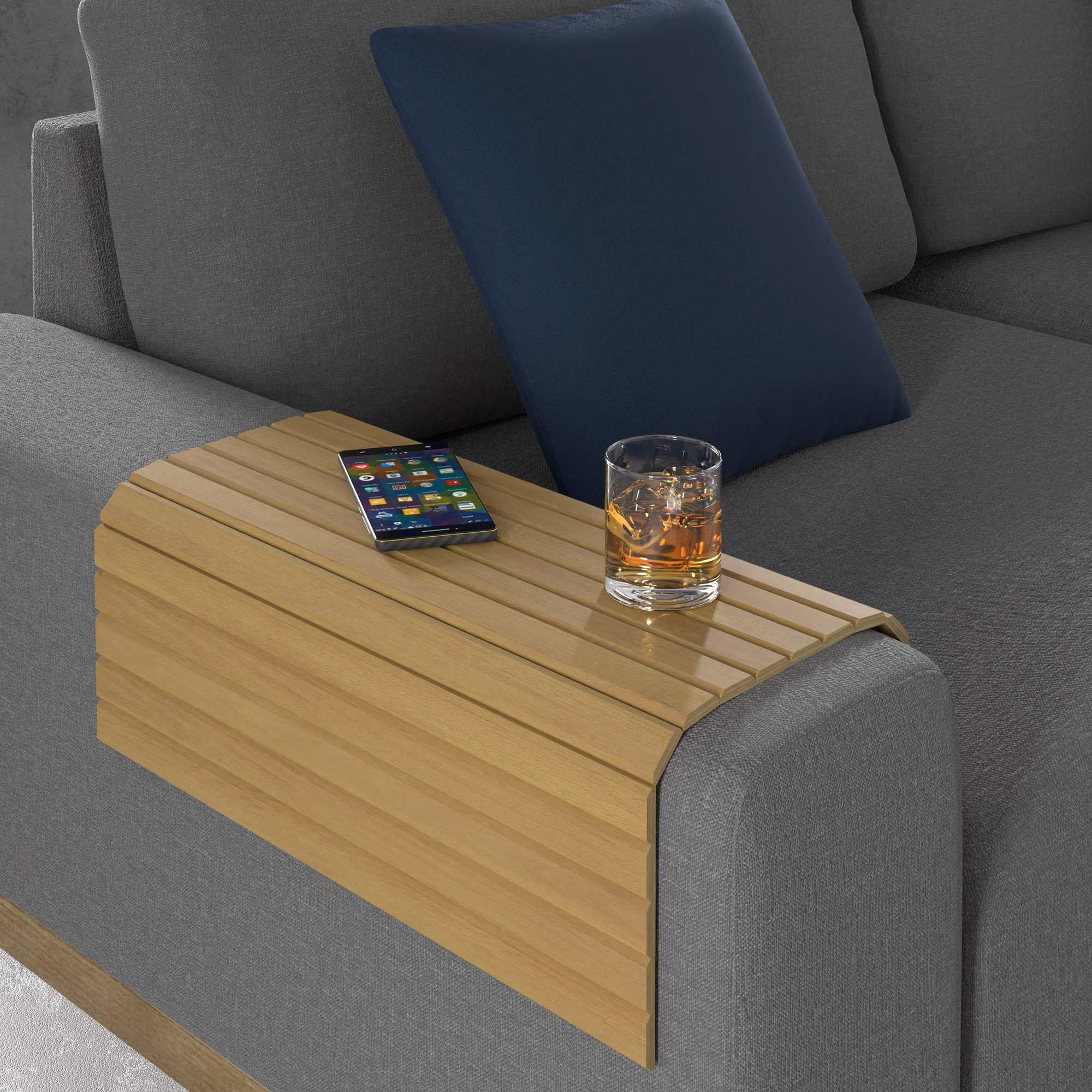 Zmień sposób, w jaki odpoczywasz, dzięki drewnianej nakładce w słonecznym odcieniu olchy. Ten innowacyjny gadżet pozwala błyskawicznie stworzyć stabilny i twardy blat na miękkim boku kanapy lub fotela, zapewniając bezpieczne miejsce na filiżankę kawy, telefon czy pilot. Wykonana z wąskich, lakierowanych listewek podszytych naturalnym bawełnianym płótnem, nakładka jest niezwykle elastyczna i z łatwością dopasowuje się do kształtu Twoich mebli. Wybierz kolor olchy, by dodać wnętrzu przytulności, jednocześnie chroniąc tapicerkę przed wysoką temperaturą i przypadkowymi zabrudzeniami.