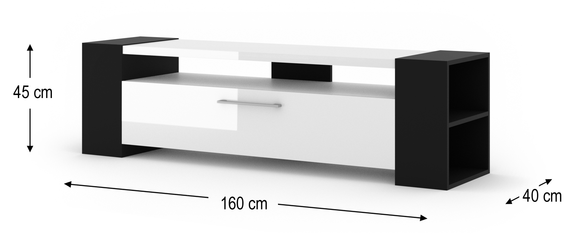 Szafka RTV LIVIA 160 cm czarny mat / biały połysk stojąca