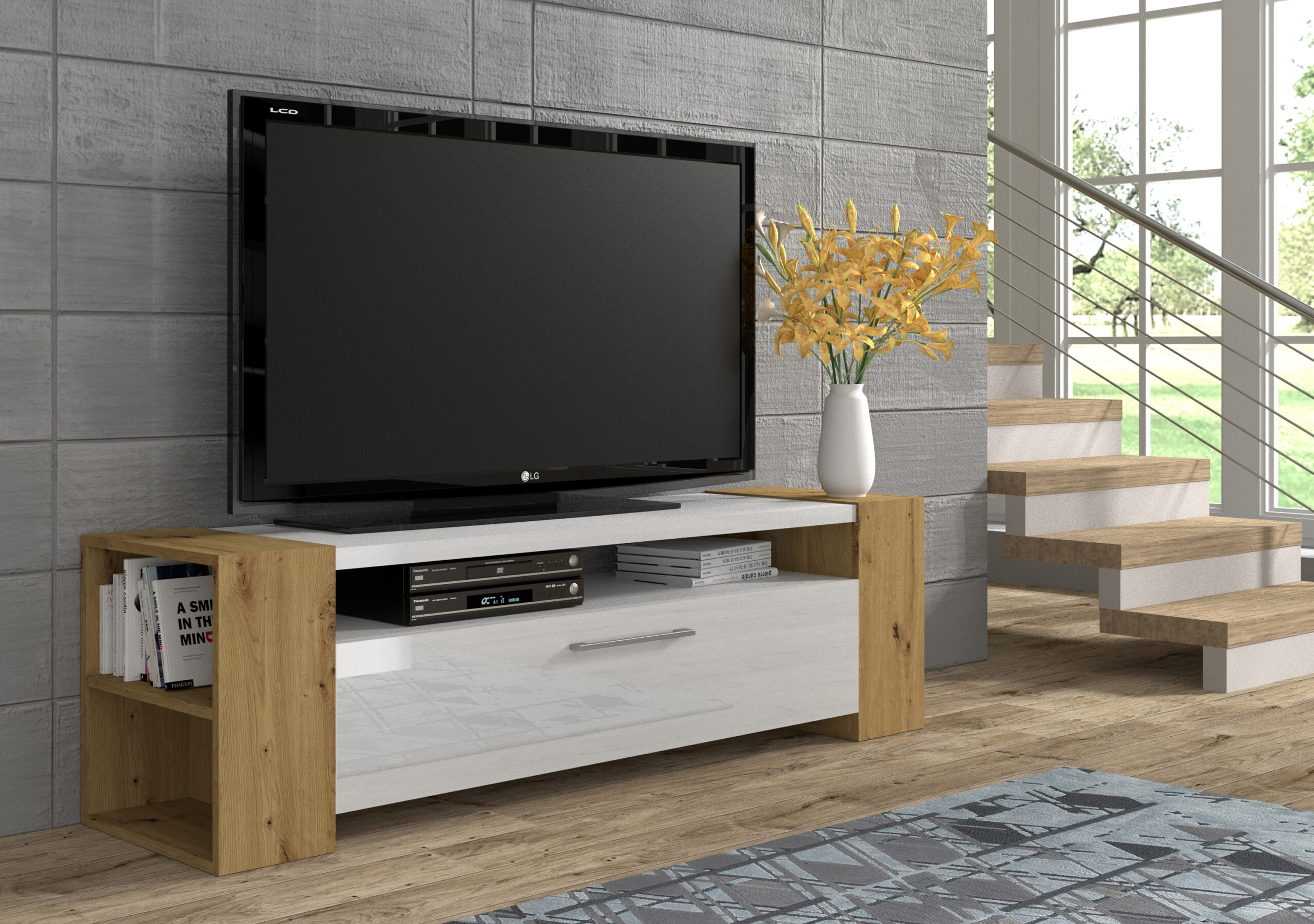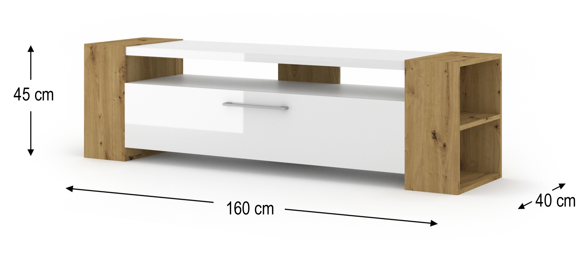 Szafka RTV LIVIA 160 cm dąb artisan / biały połysk stojąca