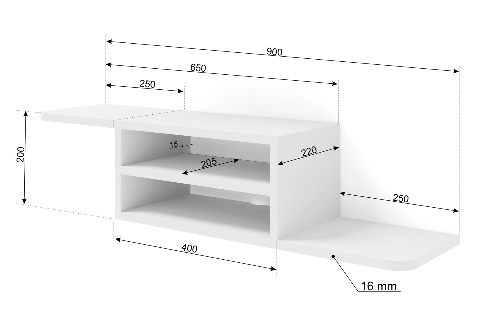 Prawdziwym ułatwieniem dla miłośników porządku są dwa otwory na kable umieszczone w górnej i dolnej płycie. Dzięki temu rozwiązaniu przewody przestają być widocznym problemem – możesz je swobodnie i estetycznie poprowadzić między urządzeniami a gniazdkami, zachowując czystą linię mebla. Solidne wykonanie z wysokiej jakości płyty laminowanej o grubości 16 mm gwarantuje stabilność, która jest kluczowa przy montażu ściennym. DEDAL to mebel, który z łatwością adaptuje się do Twoich potrzeb – może służyć jako niska szafka RTV lub jako dodatkowa półka ścienna na dekoracje.