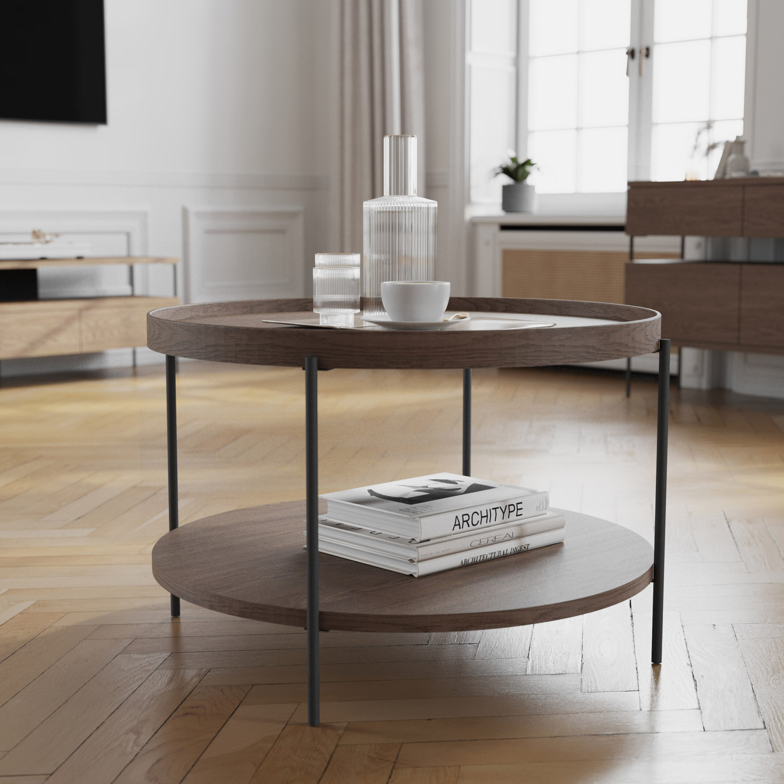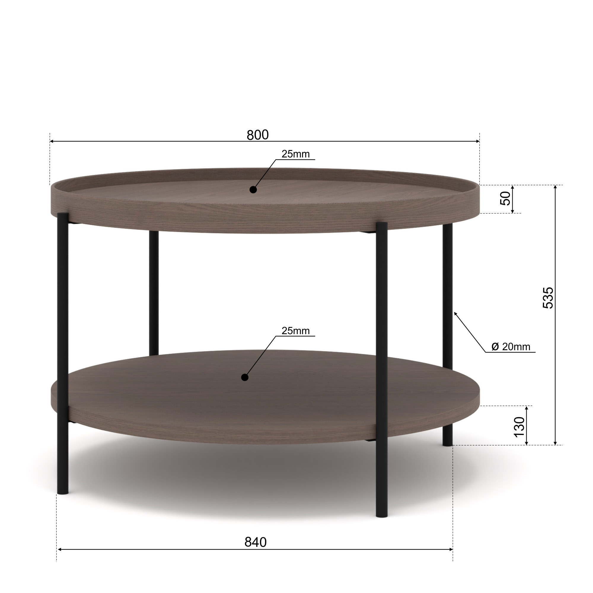 Stolik kawowy PUFFIN 84 cm chłodny brąz lakierowany fornir