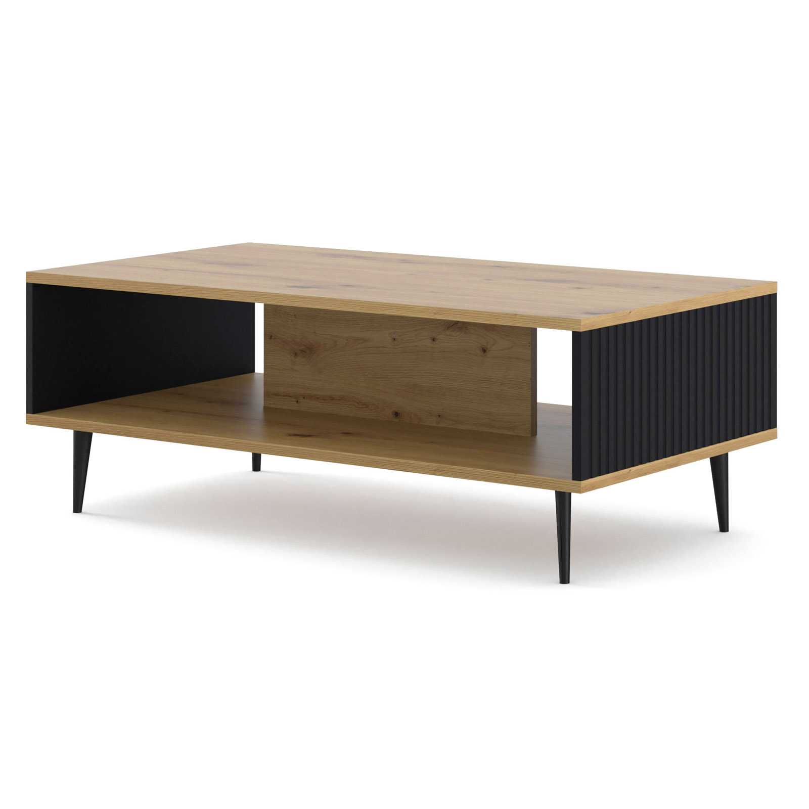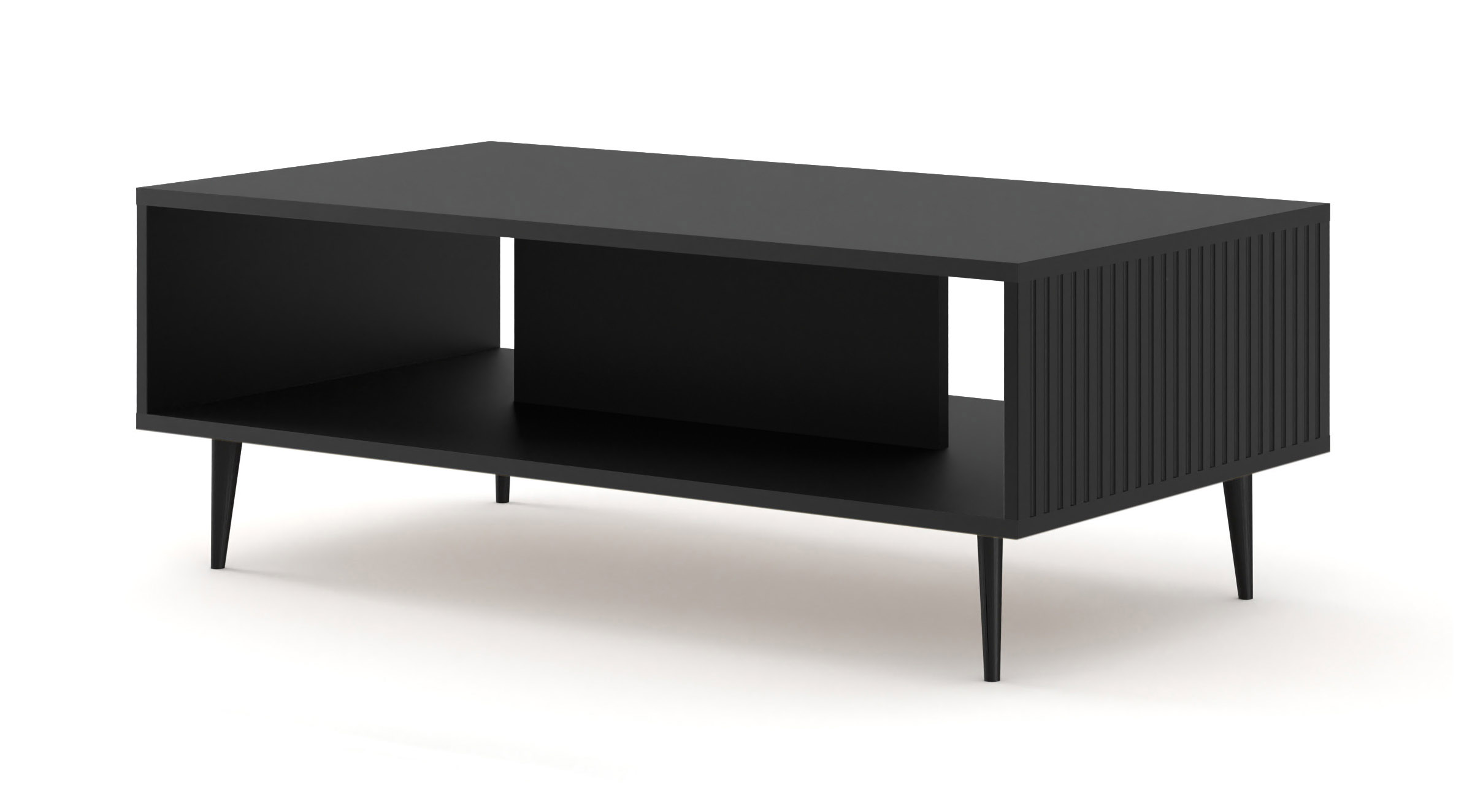 Projekt stolika Ravenna został opracowany z myślą o maksymalnej ergonomii domowego relaksu. Szeroki, stabilny blat o wymiarach 90×59,3 cm oferuje mnóstwo miejsca na filiżanki, przekąski czy ulubione dekoracje. Kluczowym udogodnieniem jest obecność funkcjonalnej półki znajdującej się tuż pod blatem – to dyskretna przestrzeń, która pełni rolę organizera, pozwalając na błyskawiczne uprzątnięcie pilotów, laptopa czy czytanej właśnie książki. Dzięki optymalnej wysokości (43 cm), stolik tworzy spójną i wygodną całość z nowoczesnymi systemami sof i narożników.
