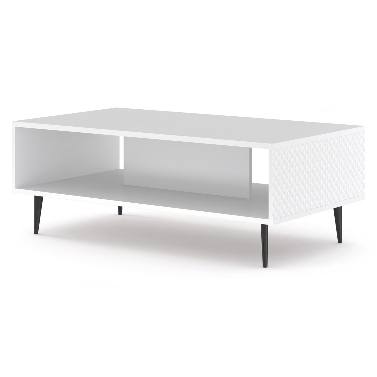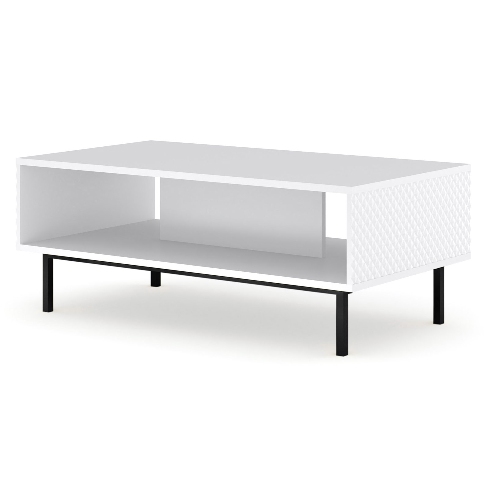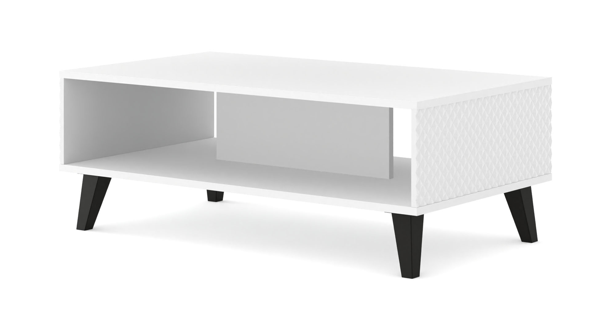 Stolik kawowy Ravenna to małe arcydzieło włoskiego designu, które wprowadzi do Twojego salonu powiew luksusu i nowoczesnej lekkości. Biały połysk frontów połączony z unikalnym, diamentowym frezowaniem tworzy rzeźbiarski efekt, który pięknie harmonizuje ze złotymi, smukłymi nóżkami typu „szpilka”. Stolik o szerokości 90 cm oferuje nie tylko elegancki blat na filiżankę kawy, ale również praktyczną, dyskretną półkę na czasopisma czy akcesoria. Wybierz stolik Ravenna, aby nadać swojej strefie wypoczynkowej wyjątkowy, biżuteryjny charakter, w którym funkcjonalność spotyka się z najwyższą estetyką premium.