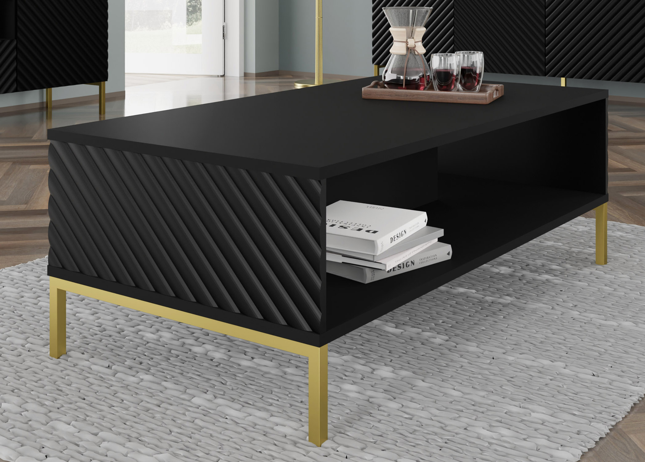 Zdefiniuj centrum swojego salonu na nowo dzięki stolikowi kawowemu SURF w głębokim, czarnym macie. Ten rzeźbiarski projekt to manifest nowoczesnego minimalizmu, w którym surowa geometria spotyka się z włoską lekkością. Prostokątna bryła z dodatkową kondygnacją na multimedia i prasę pozwala na utrzymanie idealnego ładu, podczas gdy wysokie metalowe nóżki nadają meblowi luksusowy, niemal lewitujący charakter. Wykonany z dbałością o najwyższą jakość detali, stolik SURF to idealny towarzysz dla Twojej sofy, wnoszący do wnętrza spokój, styl i bezkompromisową funkcjonalność.