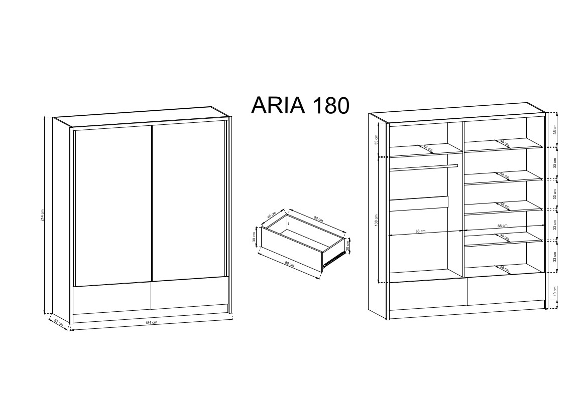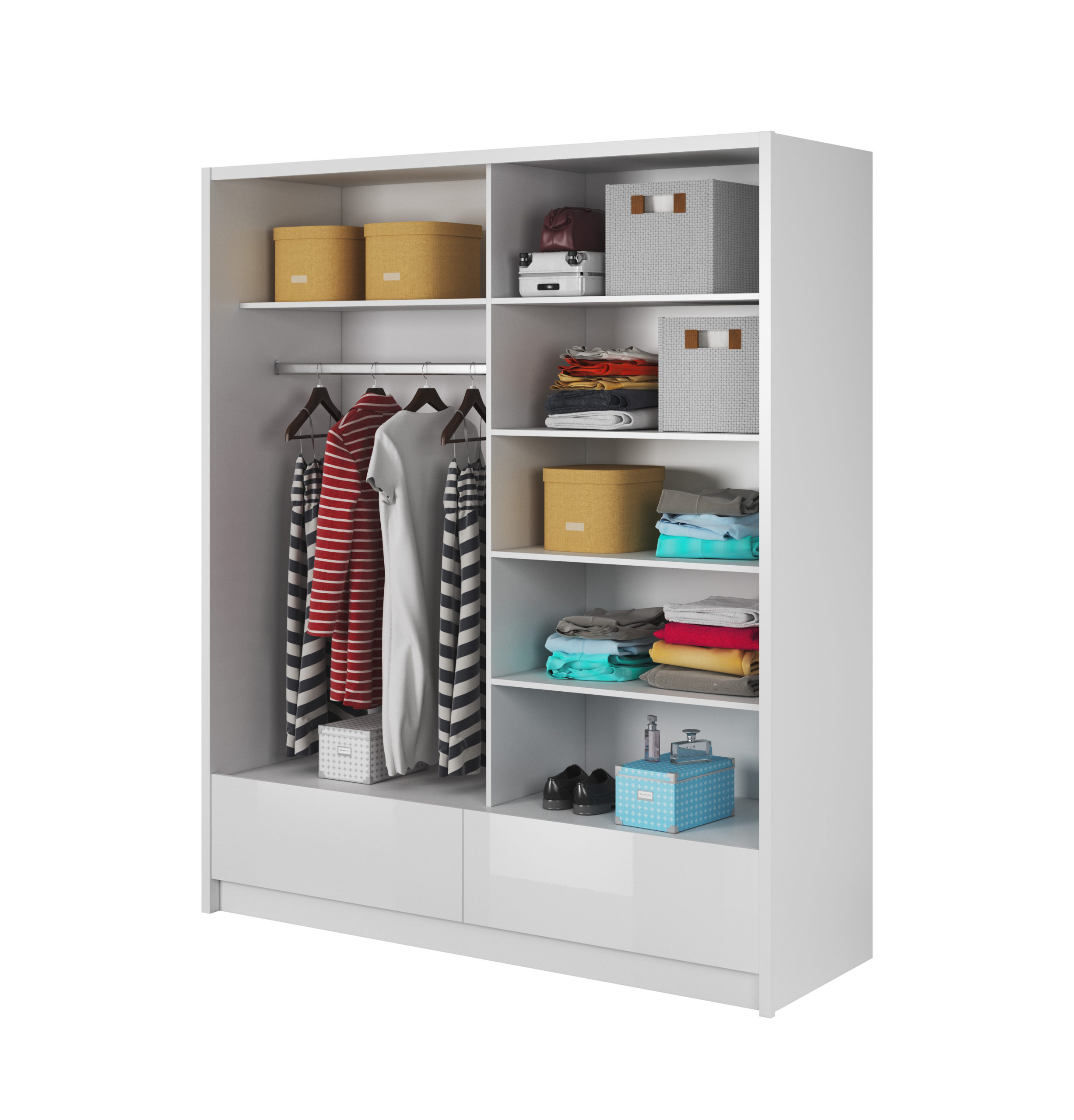 Szafa ARIA I 180 cm biały mat / biały połysk z lustrem