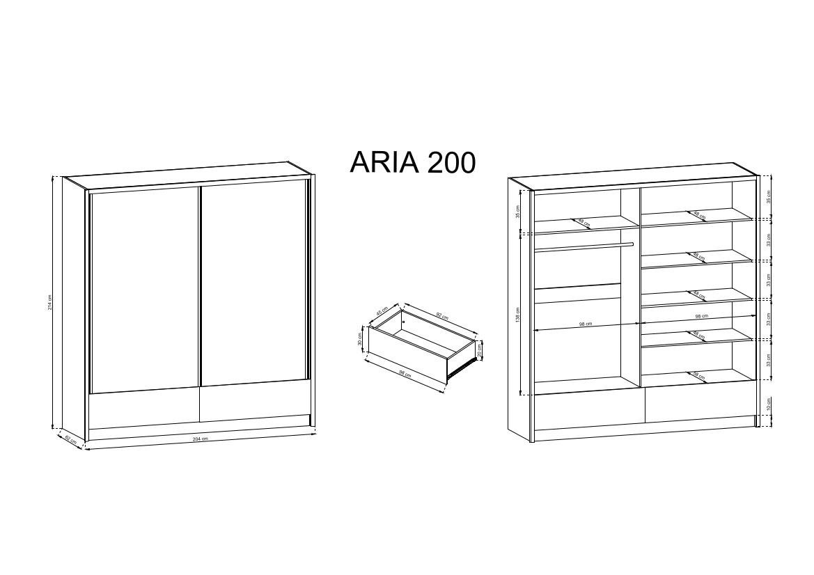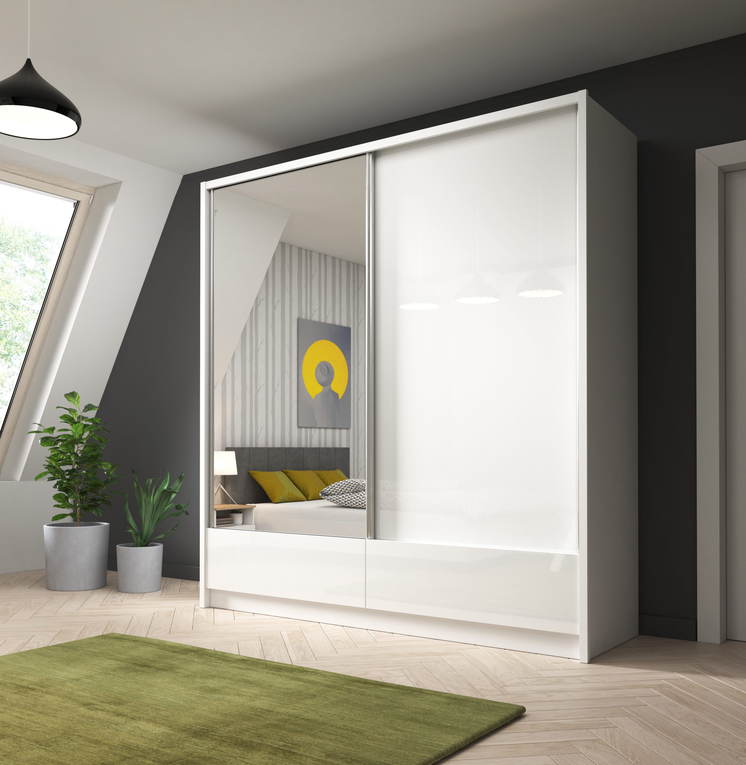 Szafa ARIA I 200 cm biały mat / biały połysk z lustrem