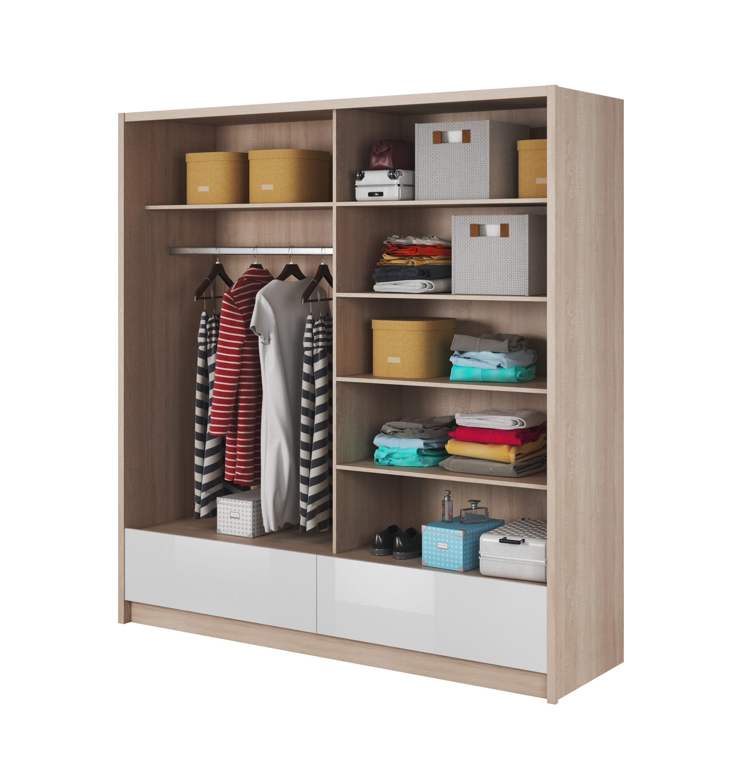 Szafa ARIA I 200 cm dąb sonoma / biały połysk z lustrem