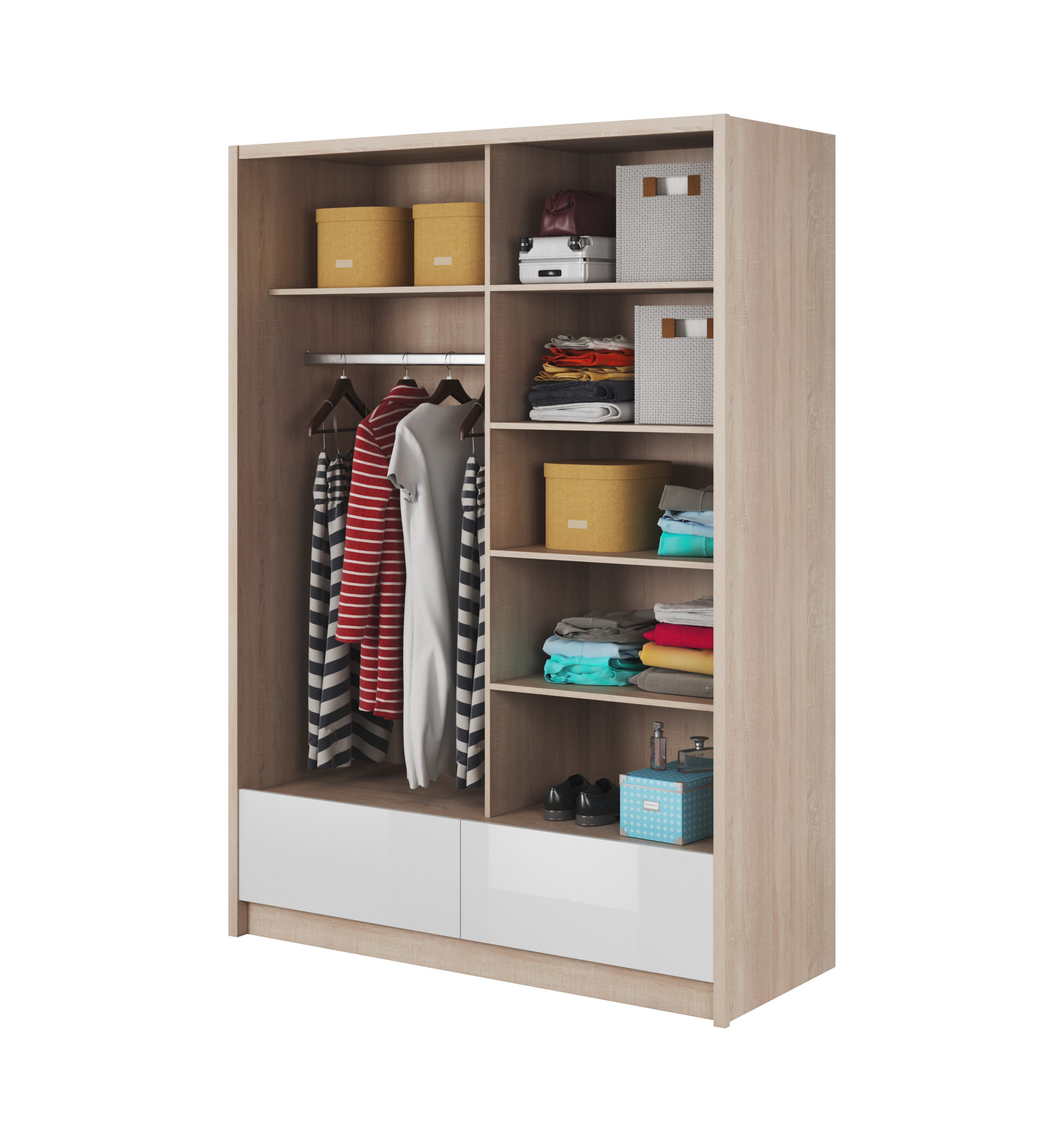 Szafa ARIA II 150 cm dąb sonoma / biały połysk z lustrem