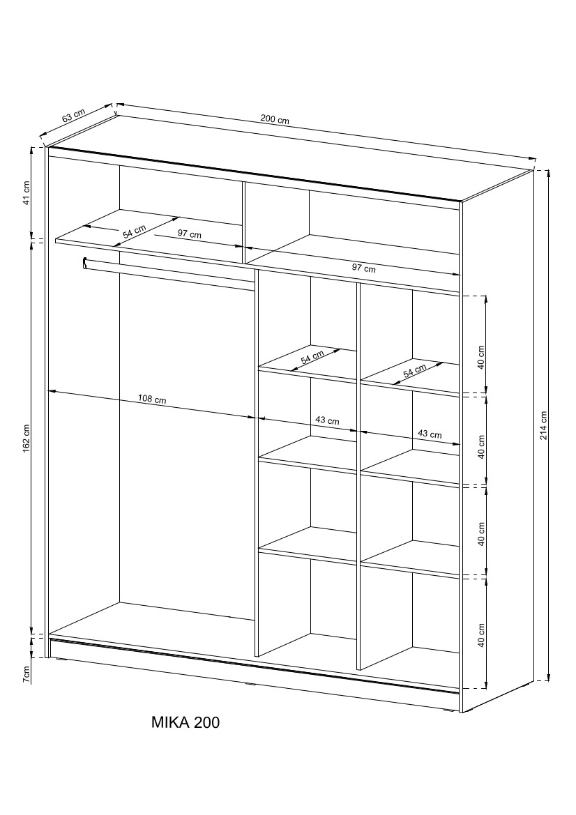 Szafa MIKA I 200 cm biały mat z lustrem